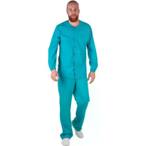 - Материалы. Ткань должна быть безворсовой, прочной и износостойкой, выдерживать частые высокотемпературные стирки и дезинфекцию, а также не впитывать запахи. Лучший вариант – смесовая ткань, в составе которой присутствует 65% полиэстера и 35% хлопка.