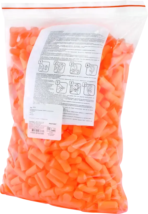 Противошумные вкладыши изготовлены из мягкого гипоаллергенного вспененного полиуретана, принимают форму слухового канала.