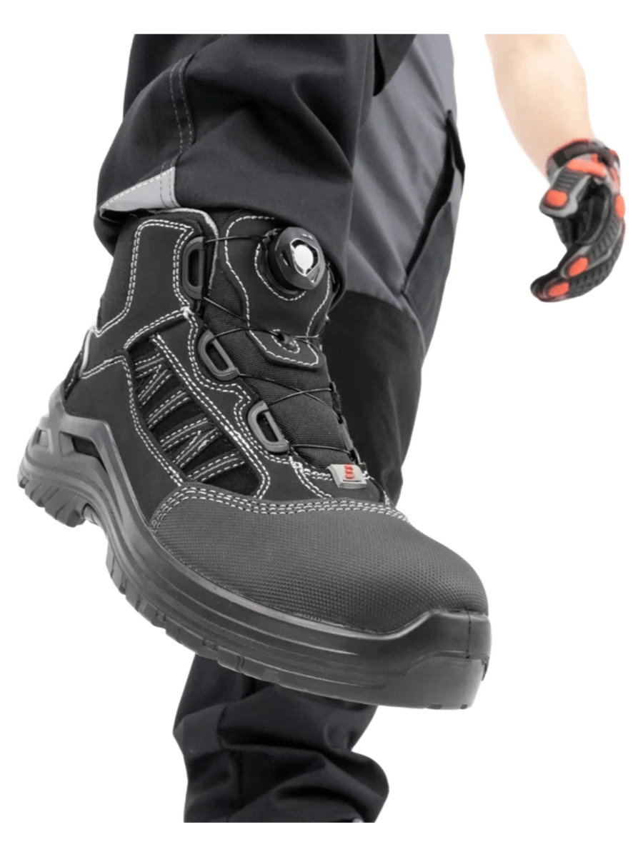ОписаниеБотинки летние мужские Brodeks Icon BRS103, черный - легкая, удобная и привлекательная защитная обувь с прекрасными водоотталкивающими свойствами и высокой степенью защиты. Верх обуви выполнен из комбинации натуральной кожи, защищающей от влаги, и легкого дышащего текстиля. Это позволяет обеспечить комфорт и высокую степень защиты при небольшом весе обуви. Отличительной особенностью ботинок является система быстрой шнуровки FitGo. Основные области применения: подходит для уличных работ в летний и демисезонный период, а также для круглогодичных работ в помещении. Рекомендуется для таких сфер, как строительство, монтажные работы, обслуживание техники и оборудования, отделочные работы.