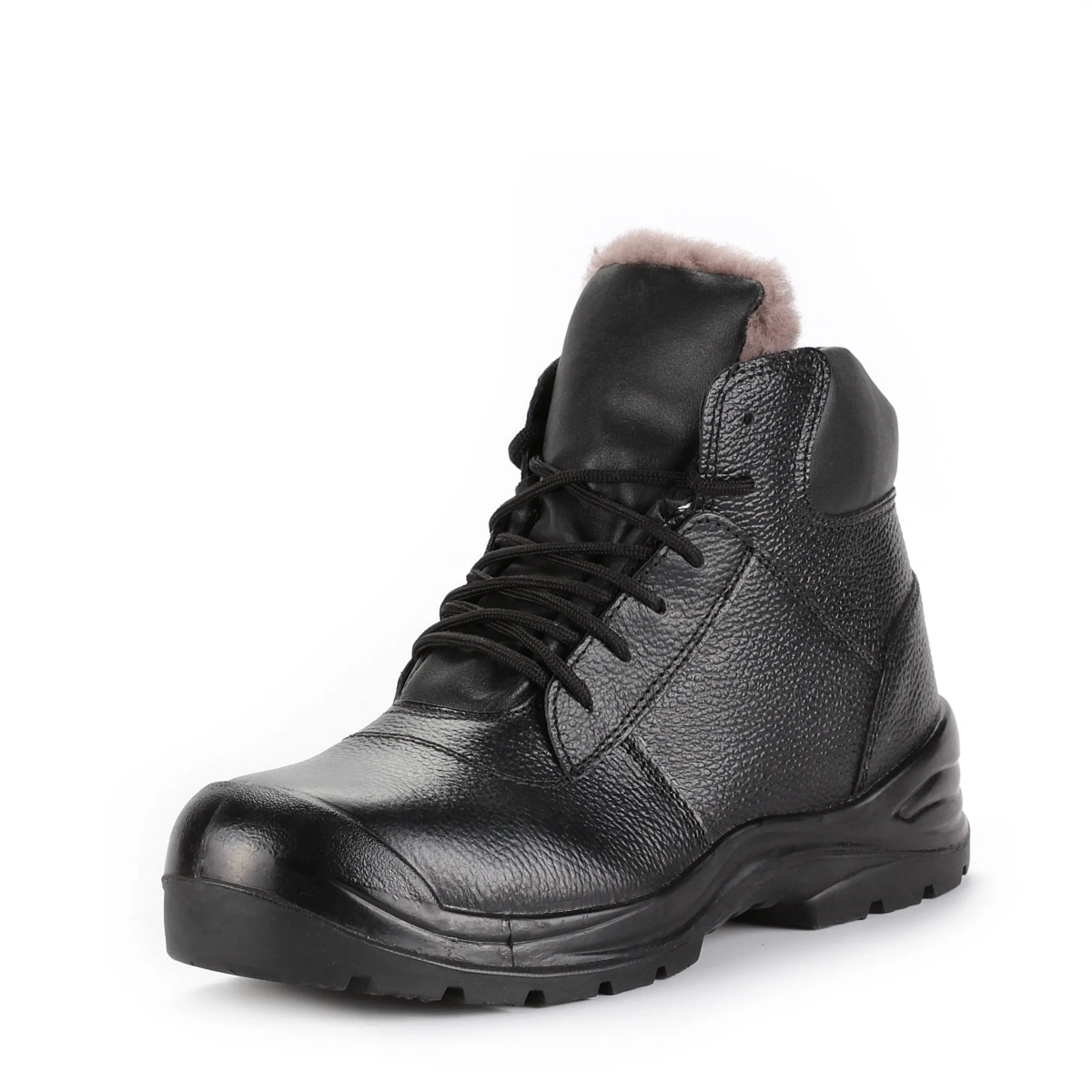 ОписаниеБотинки зимние рабочие из натуральной кожи с глухим клапаном утеплённые натуральным мехом с поликарбонатным подноском на подошве из полиуретана и резины на основе нитрильного каучука