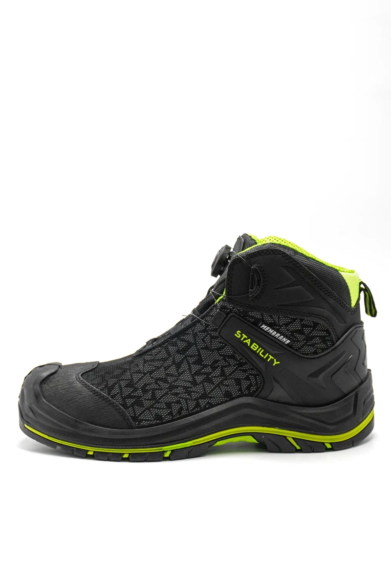 Накладка из ТПУ материала с тиснением из резины обеспечивает защиту от брызг и слякоти. Пластиковая накладка на пятке в сочетании с системой поддержки свода стопы «Support System» является эффективной системой для фиксации, разработанной для поддержания свода стопы посредством оптимального её прилегания на всех этапах движения, обеспечивает дополнительную защиту от удара и истирания сбоку и сзади. На ботинках размещена инновационная система быстрой шнуровки. Наличие подкладки из мембраны делает обувь непромокаемой и одновременно дышащей, способной отводить испарения с поверхности стопы, а благодаря применению инновационного утеплителя Тинсулейт (Thinsulate) Вам будет комфортно даже зимой. В модели расположен композитный подносок (мун200) для защиты от ударов.