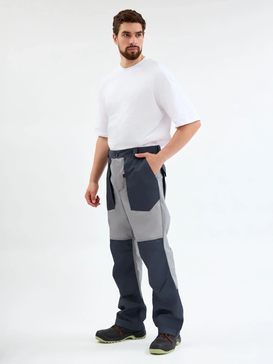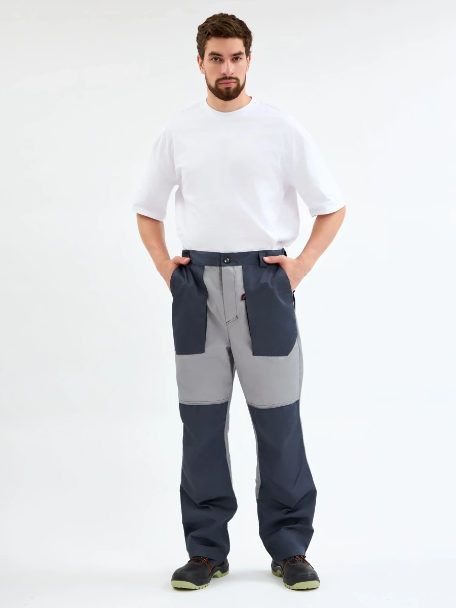 ОписаниеБрюки рабочие мужские «Лидер» созданы для комфортной работы в автомастерских, на складах, производствах. Брюки изготовлены в соответствии с ГОСТ, надежно защищают от общих производственных загрязнений. Благодаря объемным боковым и задним карманам, закрывающимся на липучку, в брюках удобно хранить инструменты, расходники и другое необходимое оборудование. Широкие наколенники с усилением и вытачками обеспечивают комфортную работу в течение длительного периода времени, защищают спецодежду от износа. Брюки рабочие оснащены светоотражающим кантом, подходят для работы в темное время суток. Мужские брюки долговечны, быстро очищаются, т.к. изготовлены из плотного материала с влагоотталкивающей пропиткой.