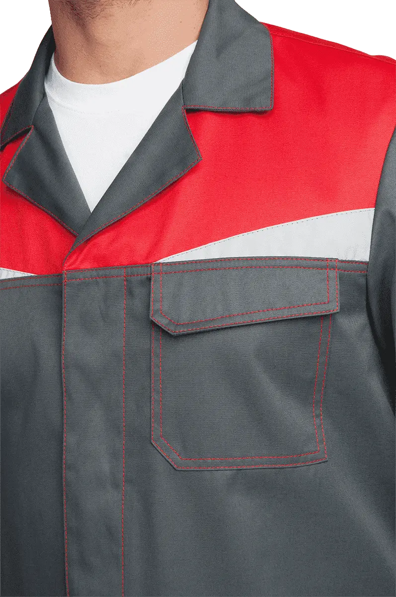 Халат КМ-10 ЛЮКС летний, серый-красный