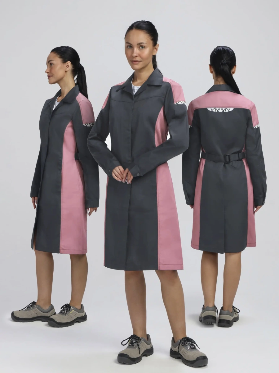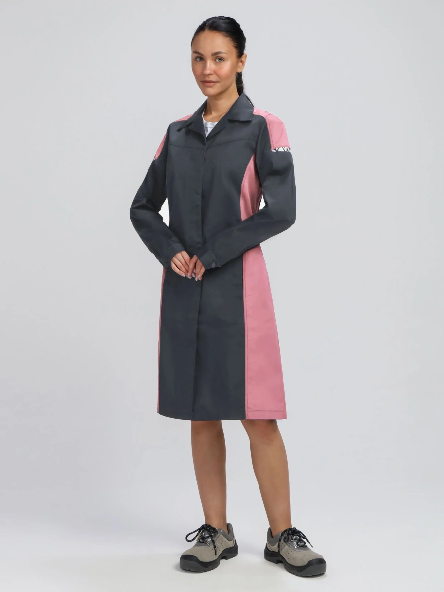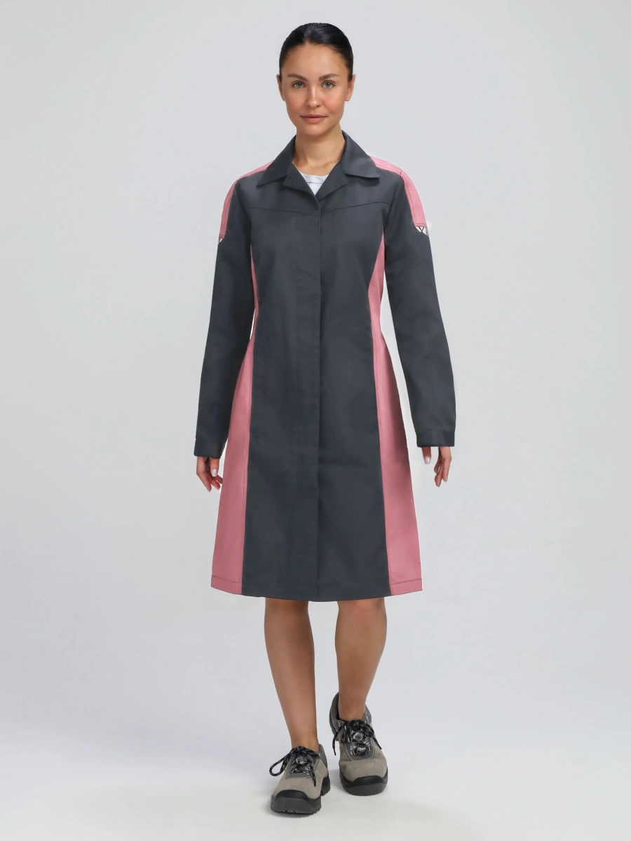 Халат женский ProfLineSpecialist (тк.Смесовая,240), серый/розовый
