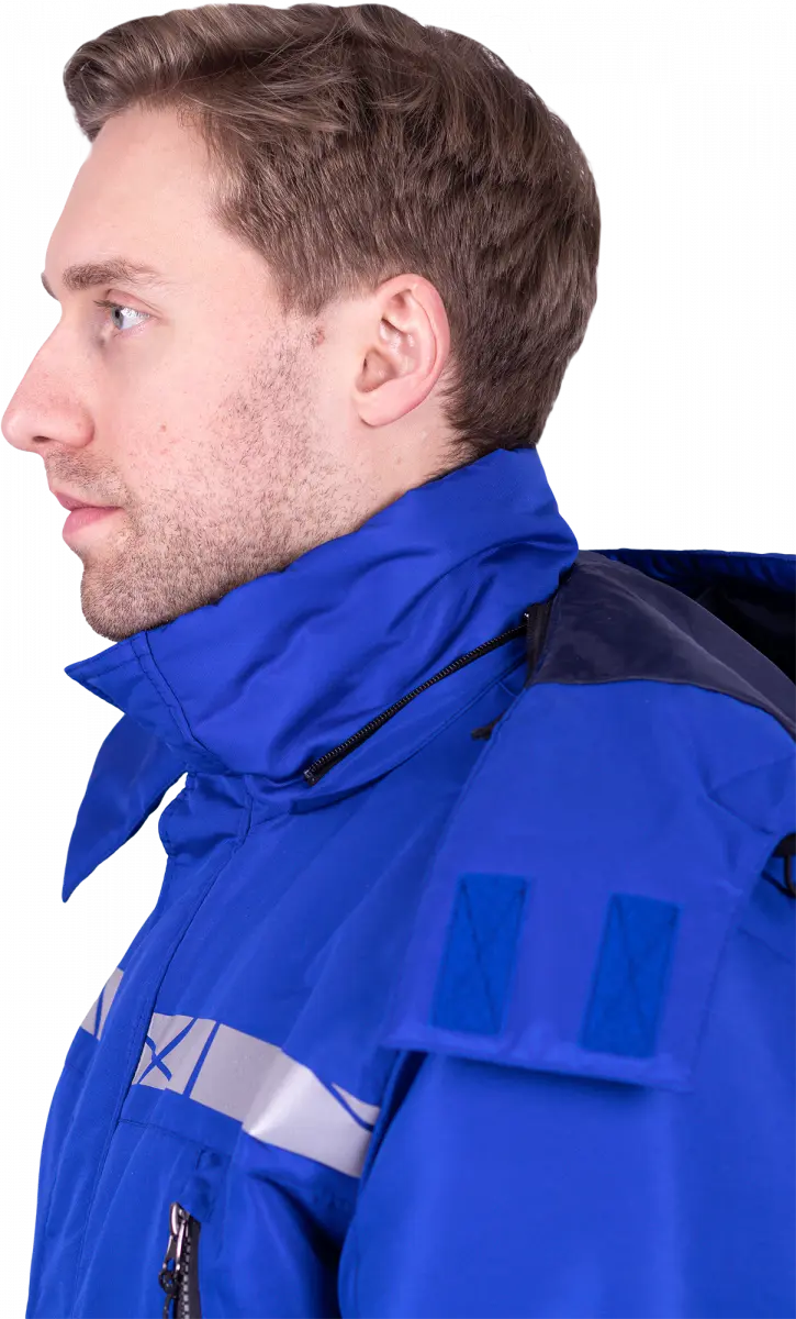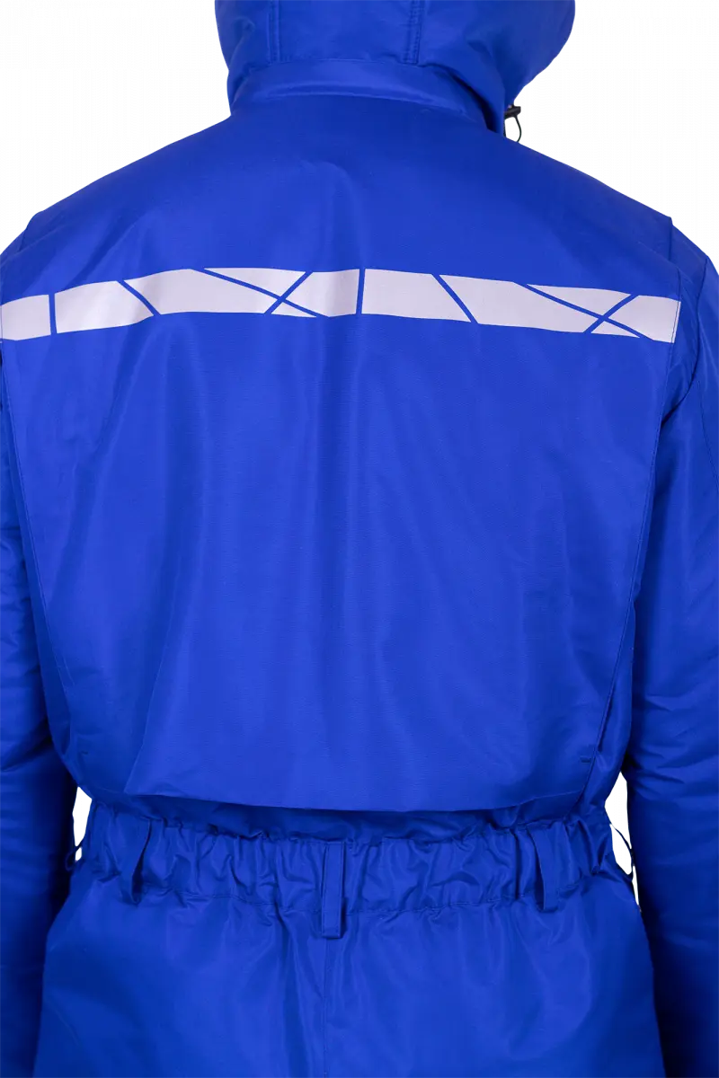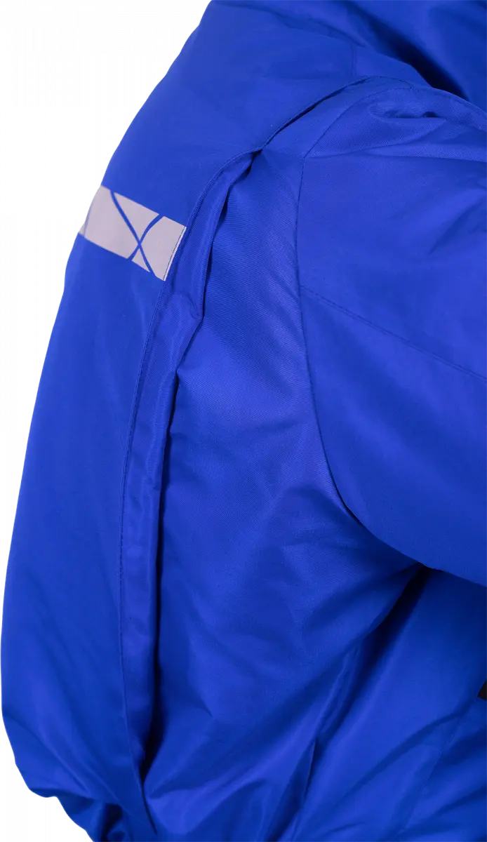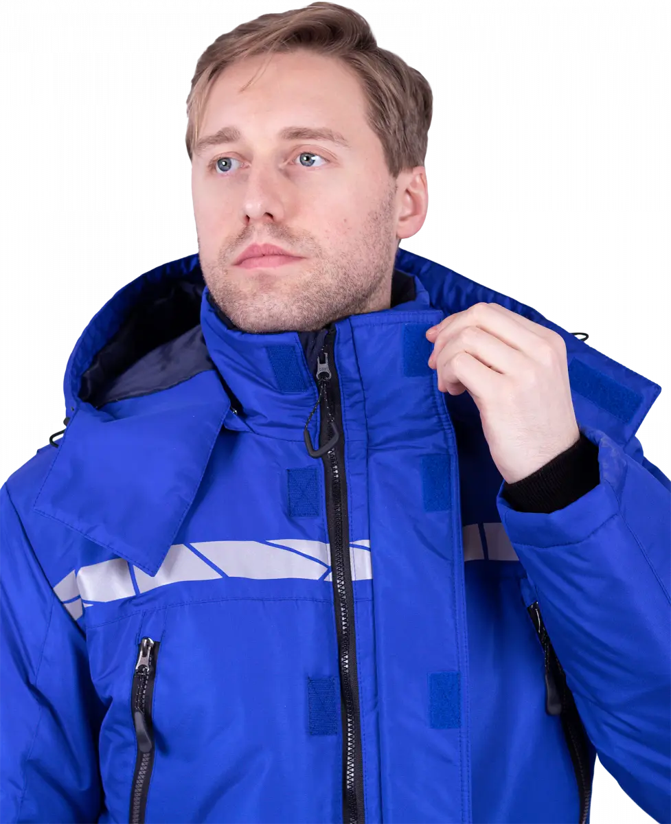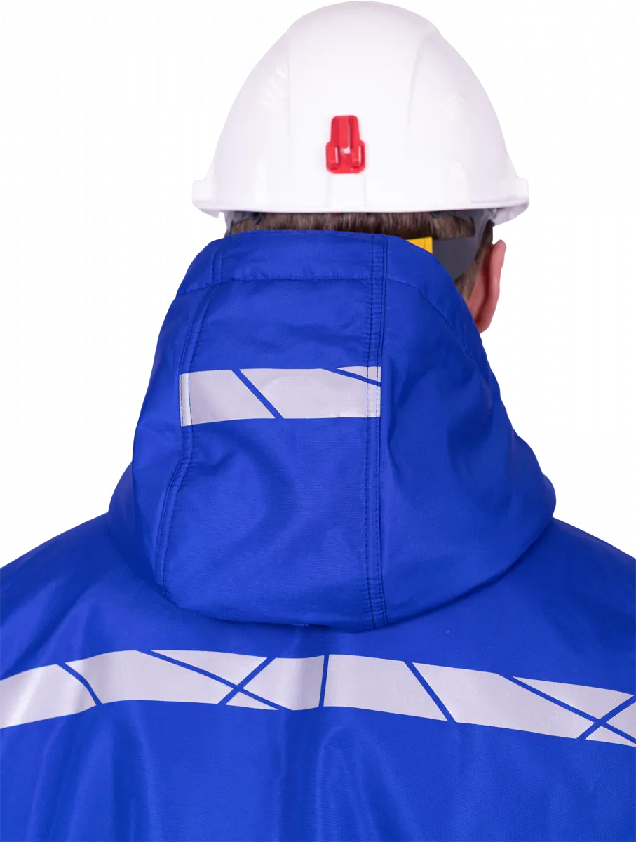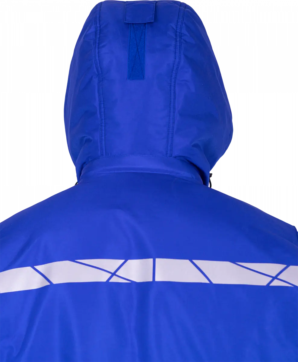 • термоклеевые световозвращающие полосы шириной 30 мм на кокетках полочки и спинки, внизу рукавов, брюк, на центральной части капюшона