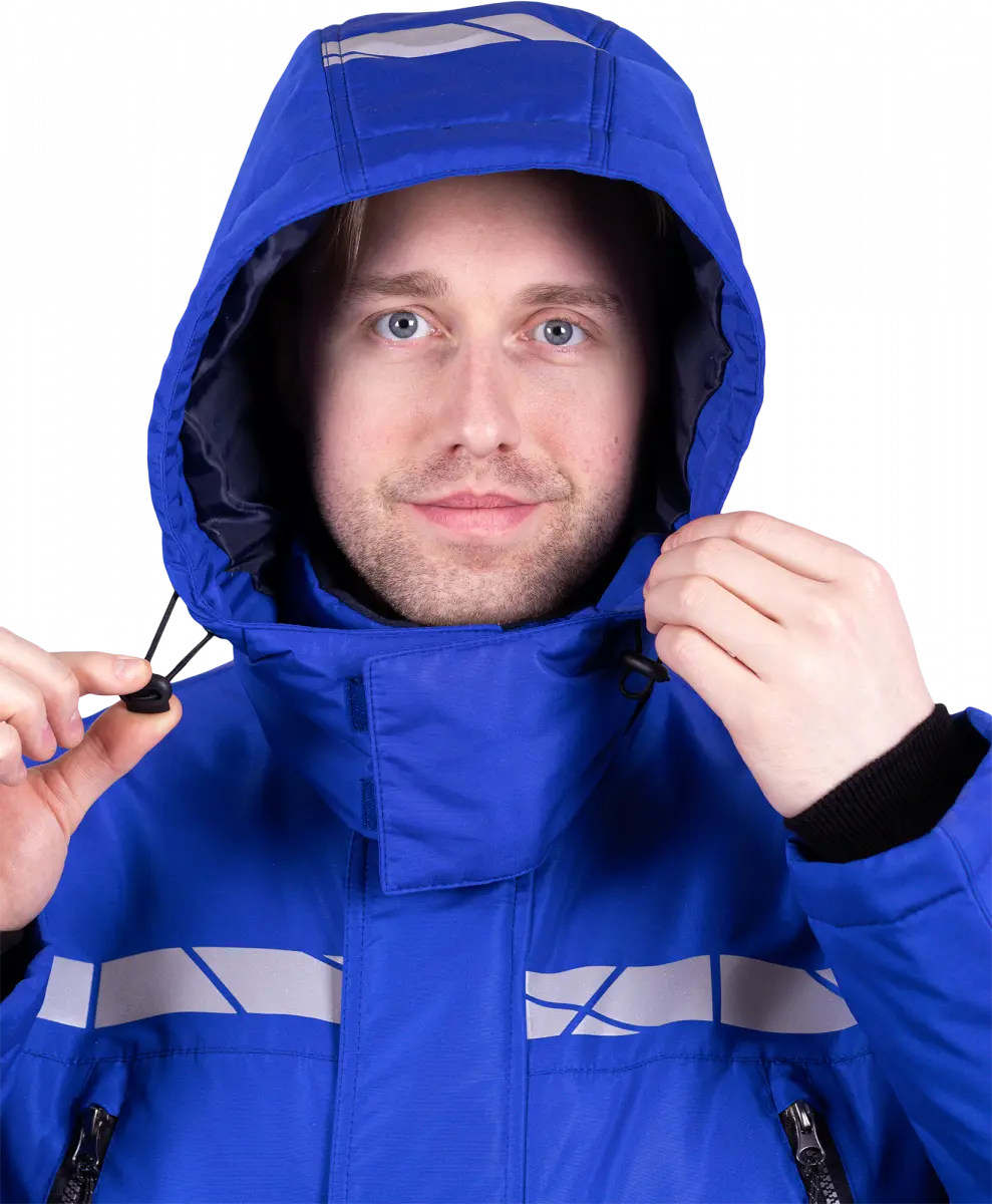 • съемный утеплённый капюшон с эластичным шнуром по лицевому вырезу