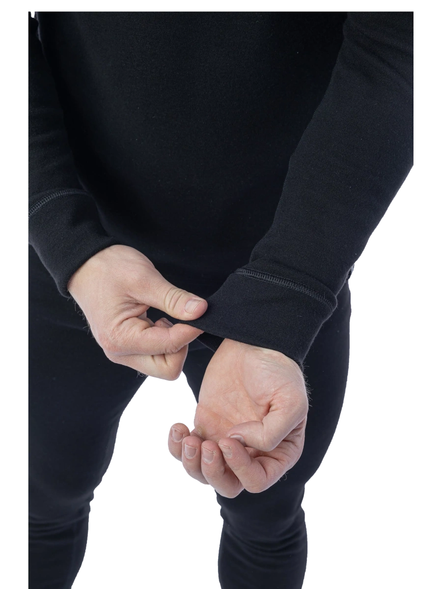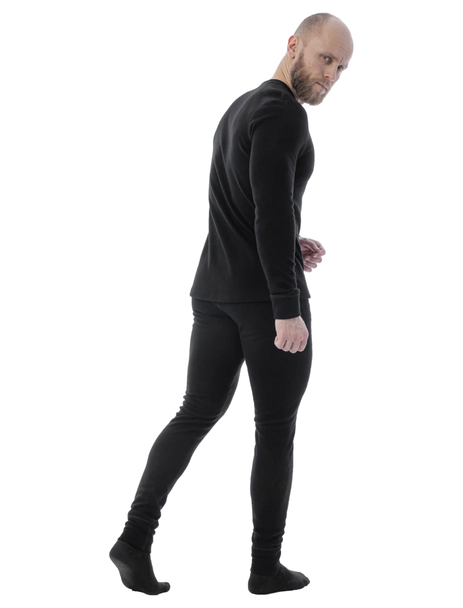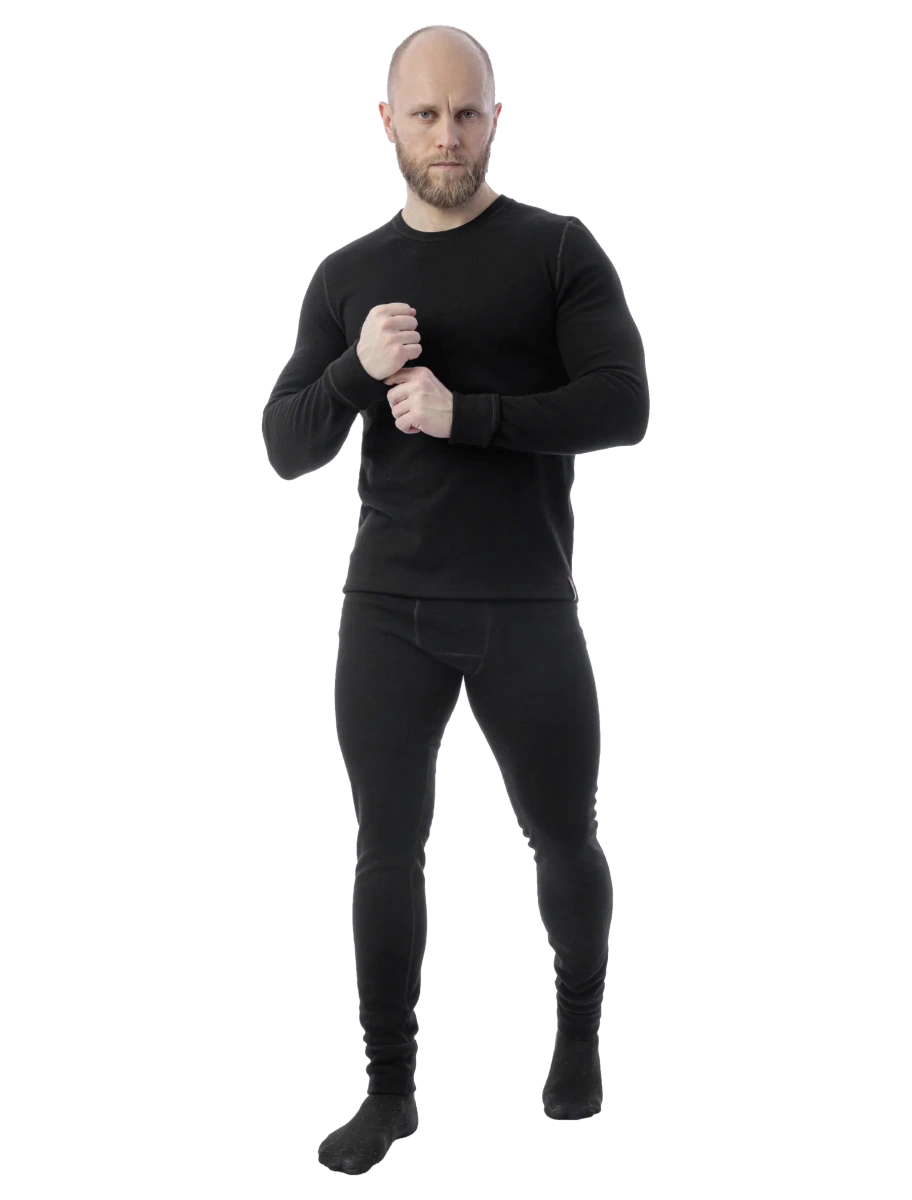Сохраняет тепло и быстро отводит влагу Температура эксплуатации: -35 градусов Эластичное Мягкое и приятное к телу Нет боковых швов Плоские швы Удлинённая спинка футболки Широкие манжеты на рукавах и по низу штанин