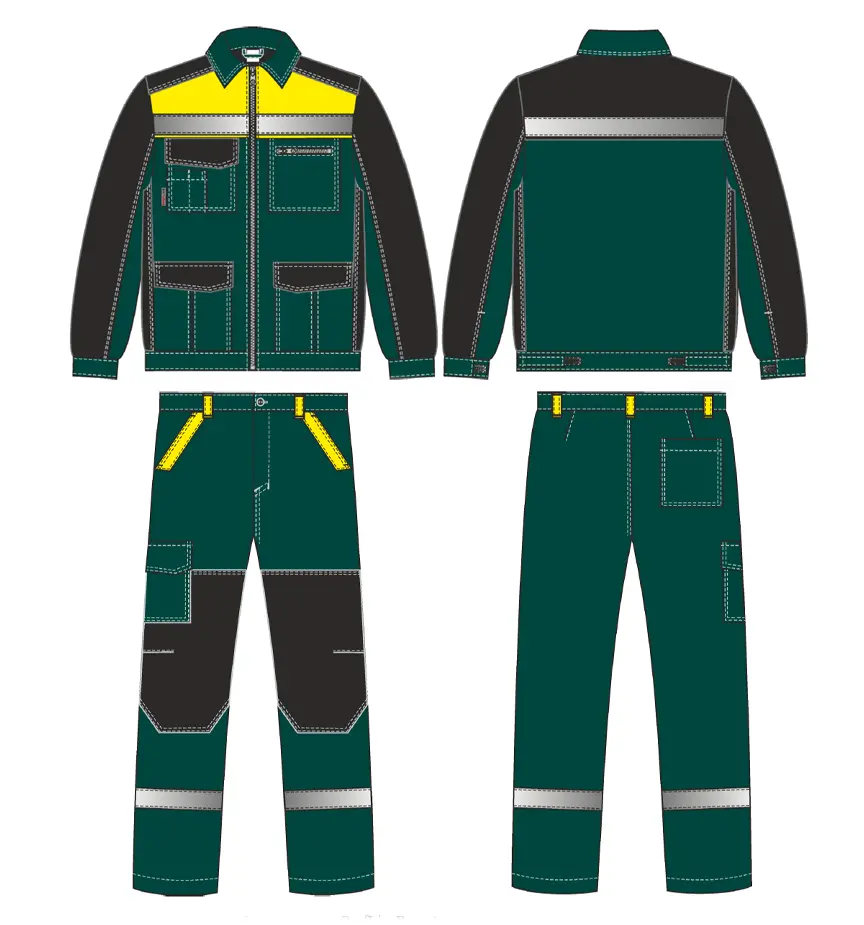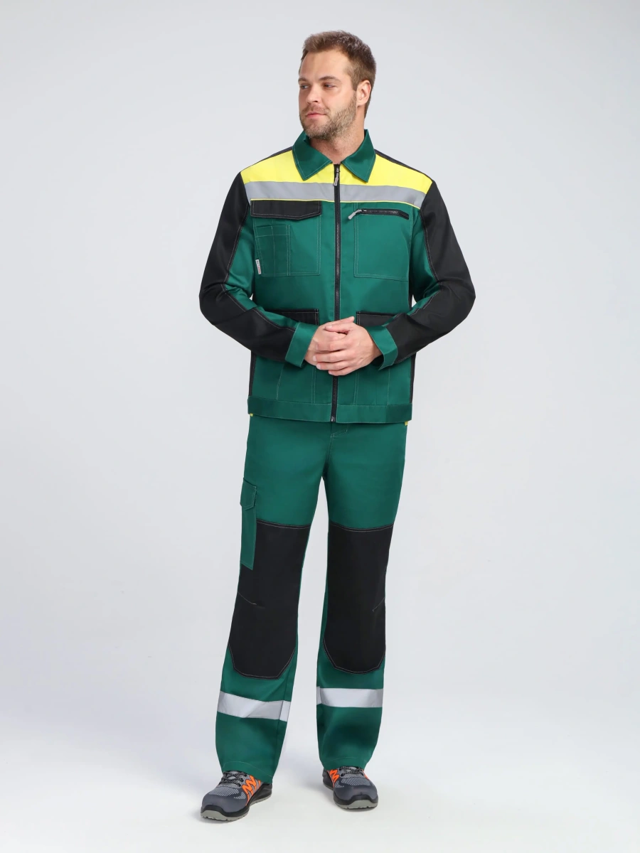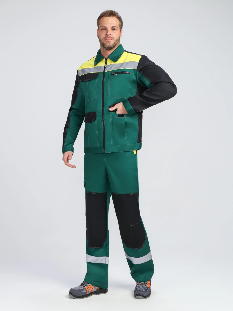 Костюм ProfLineBase-1 (тк.Твил,210) брюки, зеленый/черный/желтый
