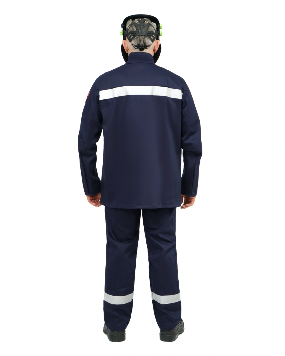 Костюм состоит из куртки и брюк. В костюме используются огнестойкая световозвращающая полоса 50 мм и огнестойкие нитки Nomex.