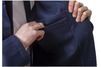 Боковые карманы, конструкция карманов на брюках исключает попадания искр и брызг расплавленного металла в карманы, вход в карман обработан закрытым срезом и усилен двойной закрепкой.