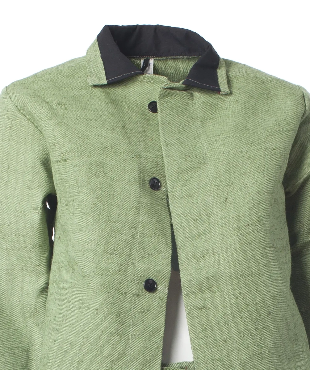 ОписаниеКостюм сварщика с накладками из брезента, мод. КСВ-2Б изготовлен в соответствии с ГОСТ и включает 2 предмета: куртка, брюки. По кокетке спинки расположены вентиляционные отверстия. Брюки застегиваются на пуговицы в боковых швах. На изделии также размещена потайная застежка на пуговицы. Усиленные накладки в области плеч и локтей увеличивают его прочность и защищают эти уязвимые зоны от повреждений.