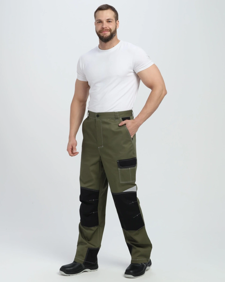 ОписаниеКостюм мужской рабочий «Вектрон» изготовлен в соответствии с ГОСТ и включает в себя два предмета: рабочая куртка мужская + брюки рабочие. Укороченная куртка удобно застегивается на молнию, оснащена поясом с регулировкой по ширине. Для безопасной работы в местах с плохим освещением предусмотрены светоотражающие полосы. Благодаря яркой контрастной отделке рабочая форма заметна издалека даже днем. Боковые и нагрудные карманы с клапаном на липучке предназначены для записей и мелочей. Рабочие брюки усилены дополнительной тканью в районе коленей и шагового шва снизу. В многозональных карманах разного типа и размера удобно хранить инструменты и расходники. Комфортную работу в неудобных позах обеспечивает анатомический крой коленей и локтей, а также возможность размещения ЭВА-вкладышей в карманы-наколенники.