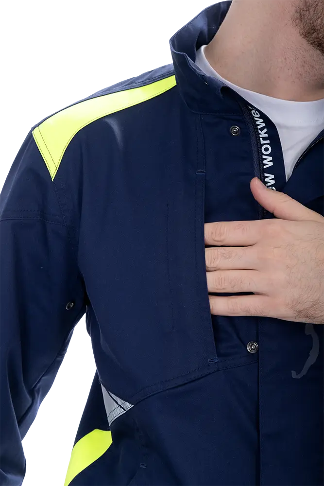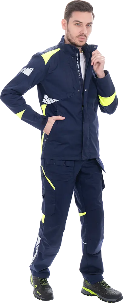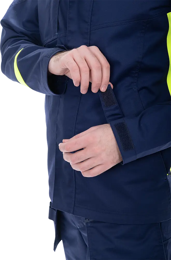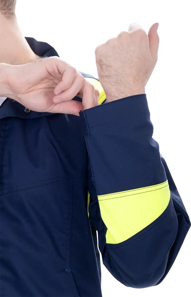 Изделие выполнено из инновационной ткани «Индустриаль Флекс» с добавлением эластолефина, которая обеспечивает высокую износостойкость и свободу движений.