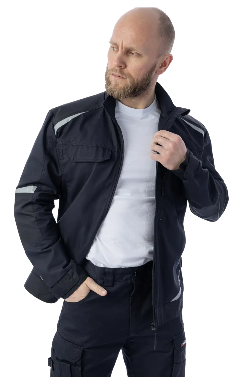 ОписаниеКуртка мужская летняя Brodeks KS 202 — многофункциональная куртка из серии "Заряженный", универсальная экипировка для тех, кто ценит надёжность и стиль в любых рабочих условиях. Сочетая полуприталенную посадку и дизайн на грани спецодежды и casual, она подчёркнет ваш профессиональный статус на стройплощадке, в цеху или на производственном объекте. Ключевые зоны износа (локти, манжеты, низ) усилены прочной тканью Forcedura, устойчивой к истиранию и механическим повреждениям, а основа из материала Workshell (35% хлопок, 65% полиэстер) обеспечит комфорт и защиту от загрязнений. 7 функциональных карманов, включая нагрудный на молнии и внутренний для документов формата А4, светоотражающие элементы и вентиляционные зоны в подмышках делают эту модель незаменимой для ежедневных задач. Благодаря отделке Easy Care сохраняет вид даже после интенсивной эксплуатации. Отличный выбор для ИТР и руководителей. А так же для всех, кому необходим баланс надежности, функциональности и современного дизайна.