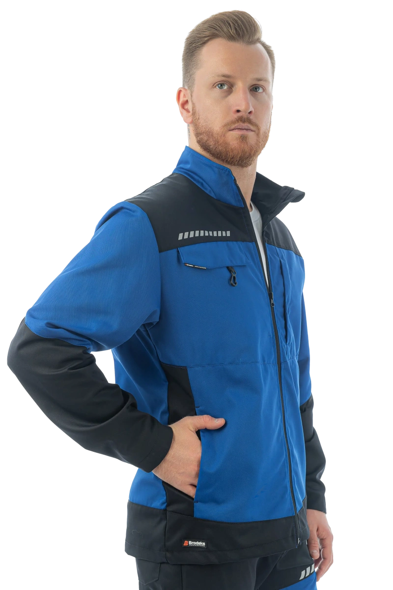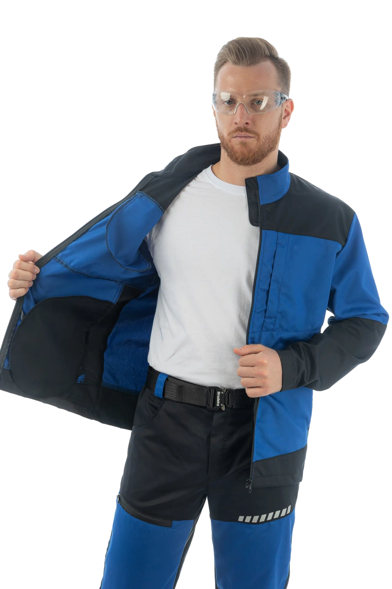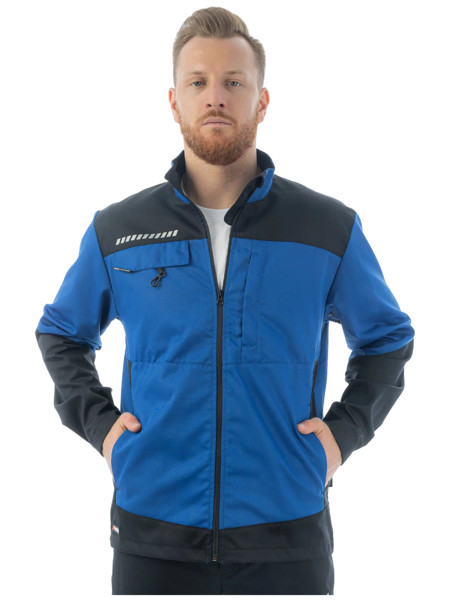 Воротник-стойка Центральная молния с подпланкой Манжет рукава с регулировкой Вентиляция в области подмышек Складки в области лопаток для свободы движений 4 кармана Карабин для ID/бейджа Светоотражающие элементы