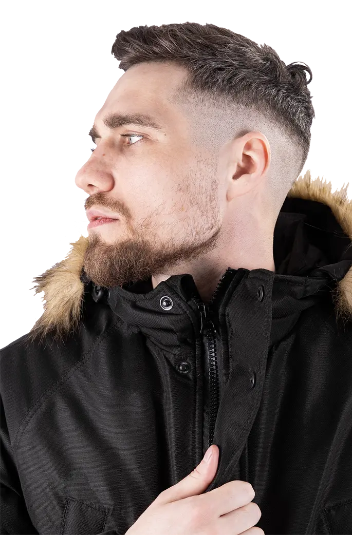 • капюшон с регулировкой объёма и съёмной меховой опушкой