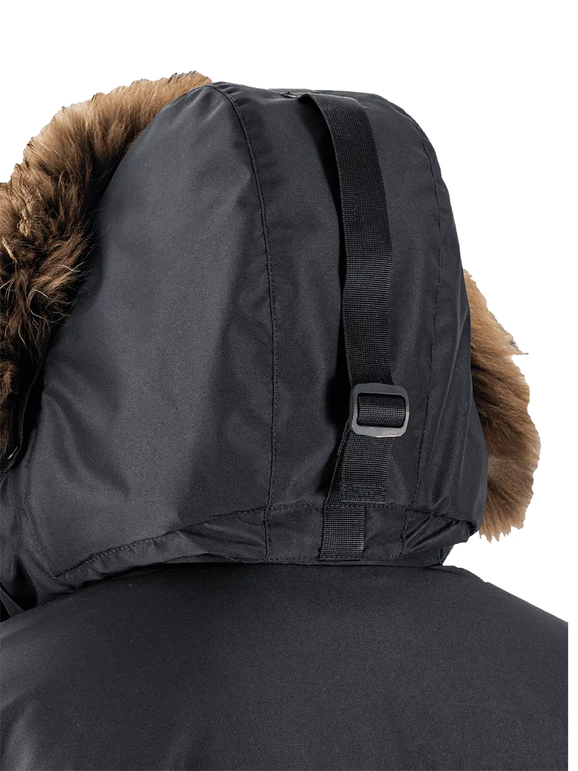 * Ткань верха: SNOW TWILL DRYTEX MAX WR, 100% полиэфир, плотность 160 г/м², водоупорность 10 000 мм вод. ст., паропроницаемость 15 000 г/м²/24 ч. Мембрана MAX защищает от ветра, сохраняет тепло и комфорт при температурах до –40 °C.