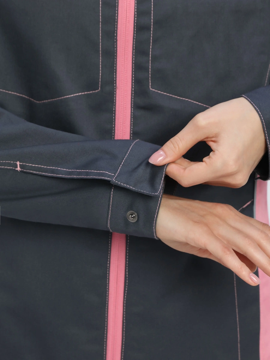 - Низ куртки с притачным поясом, а манжеты рукавов с застежкой на две кнопки для точной настройки посадки по фигуре