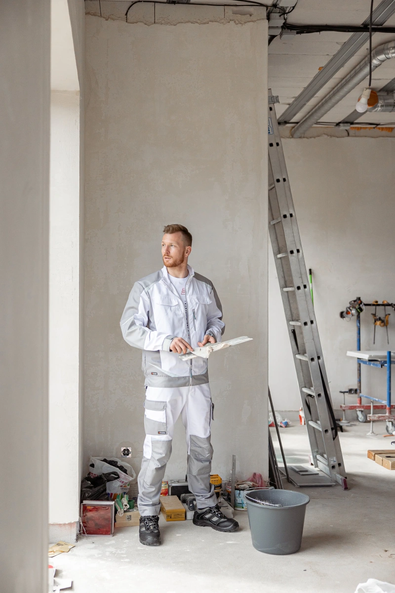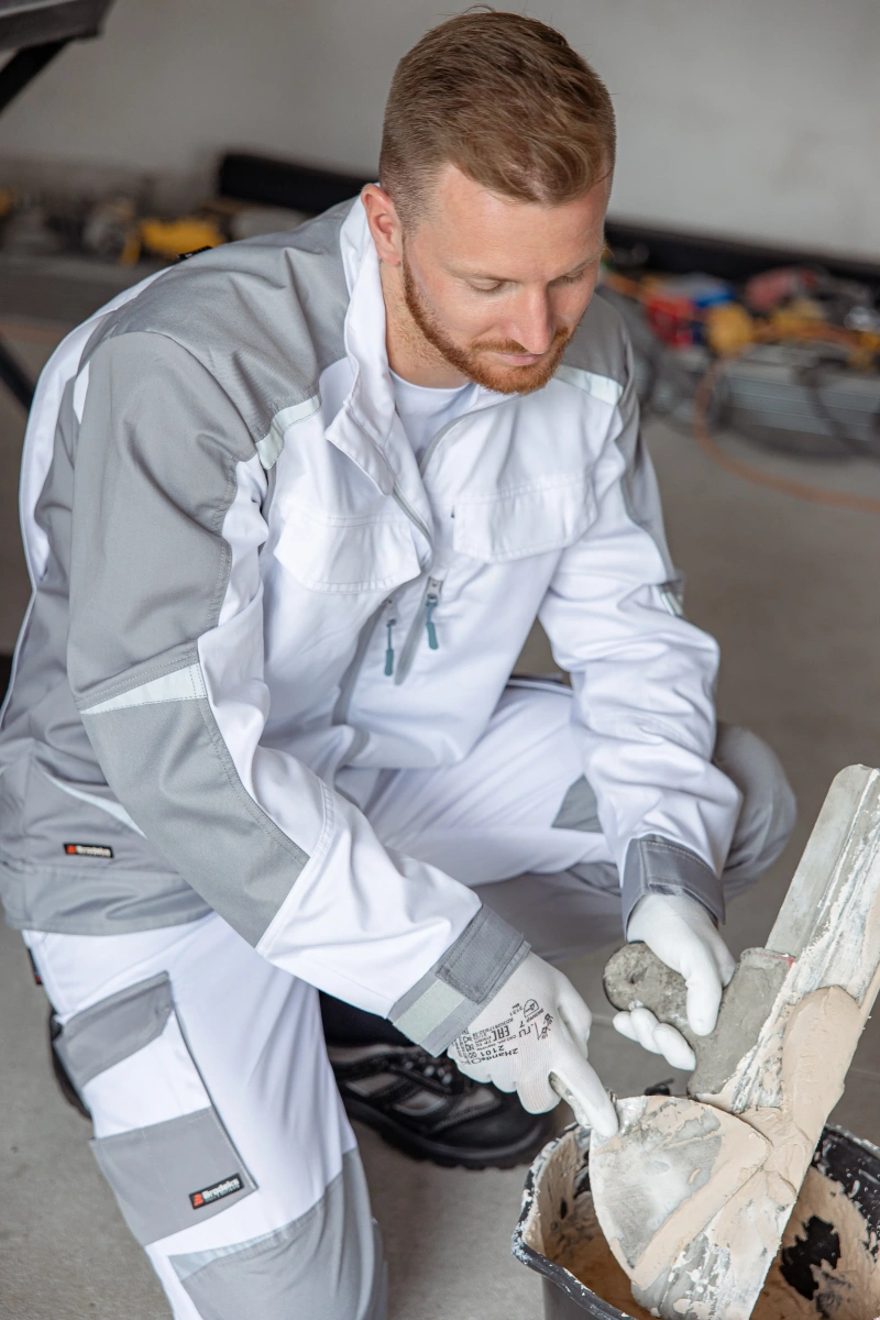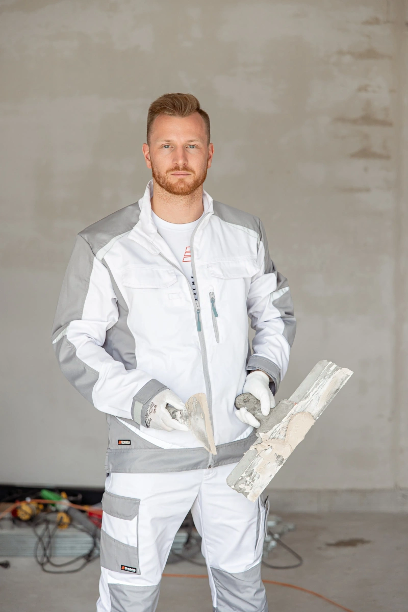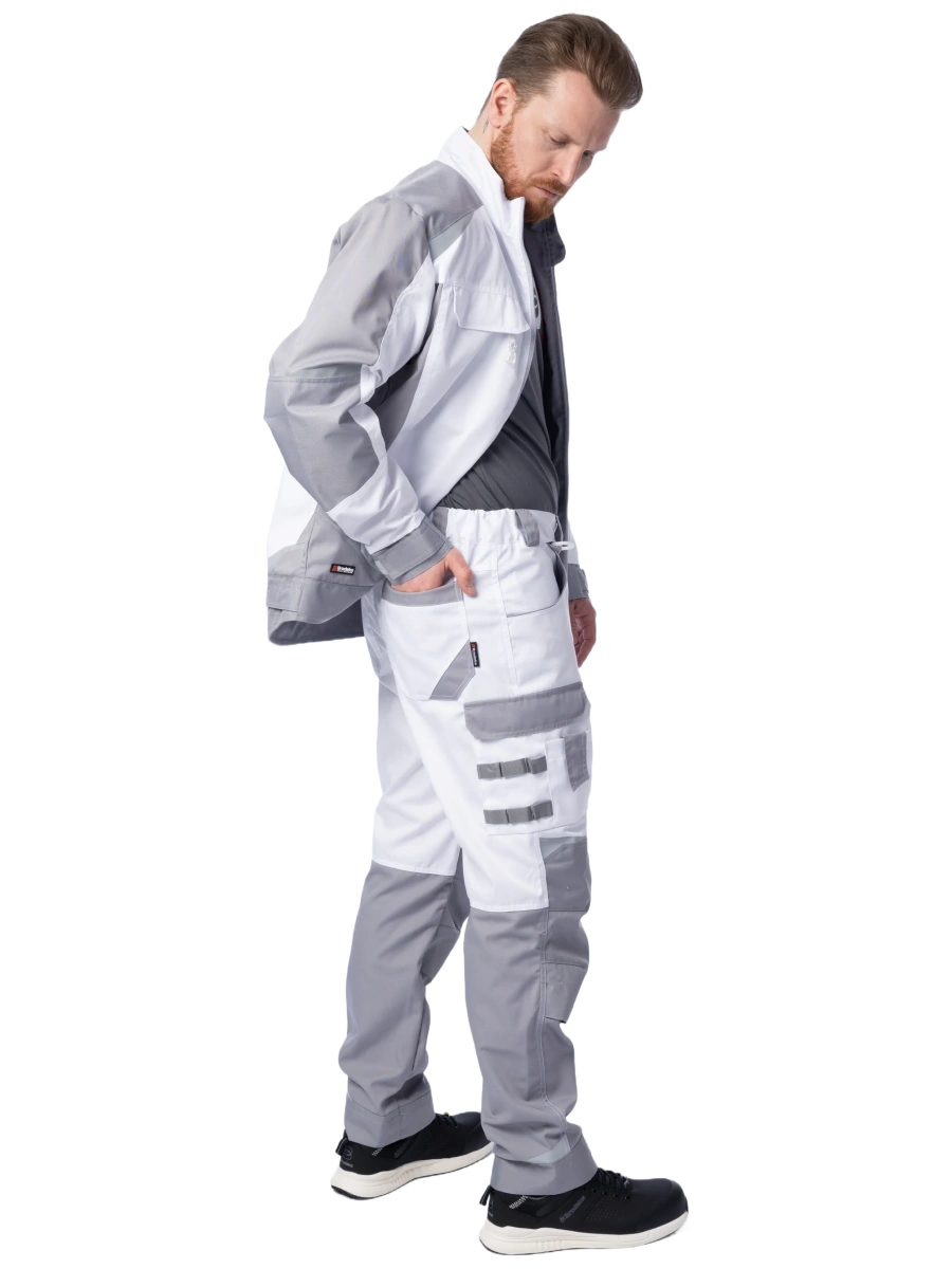 ОписаниеБрюки мужские летние Brodeks KS 302, белый/серый – практичные брюки для работы в помещении или на улице летом. Хорошо защищают от общепроизводственных загрязнений. Брюки белого цвета с серыми вставками идеально подойдут для выполнения малярных работ, и особенно для работы в условиях сильной жары и яркого солнца.