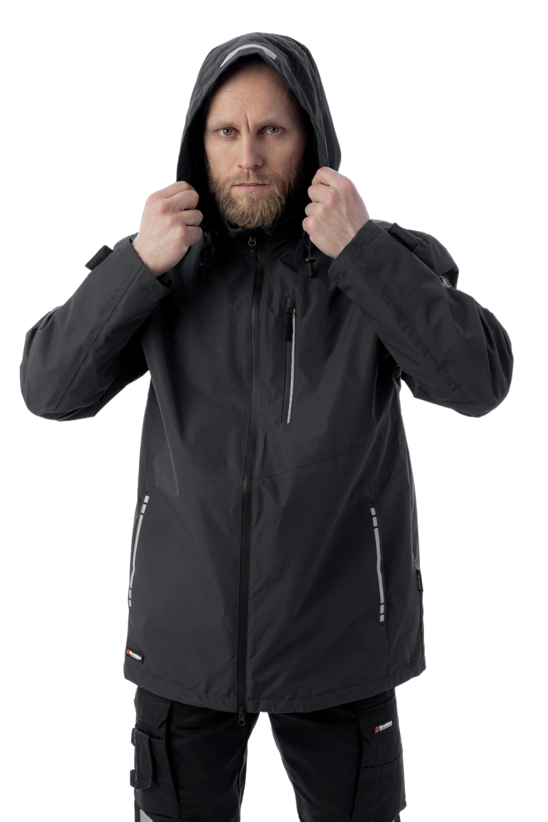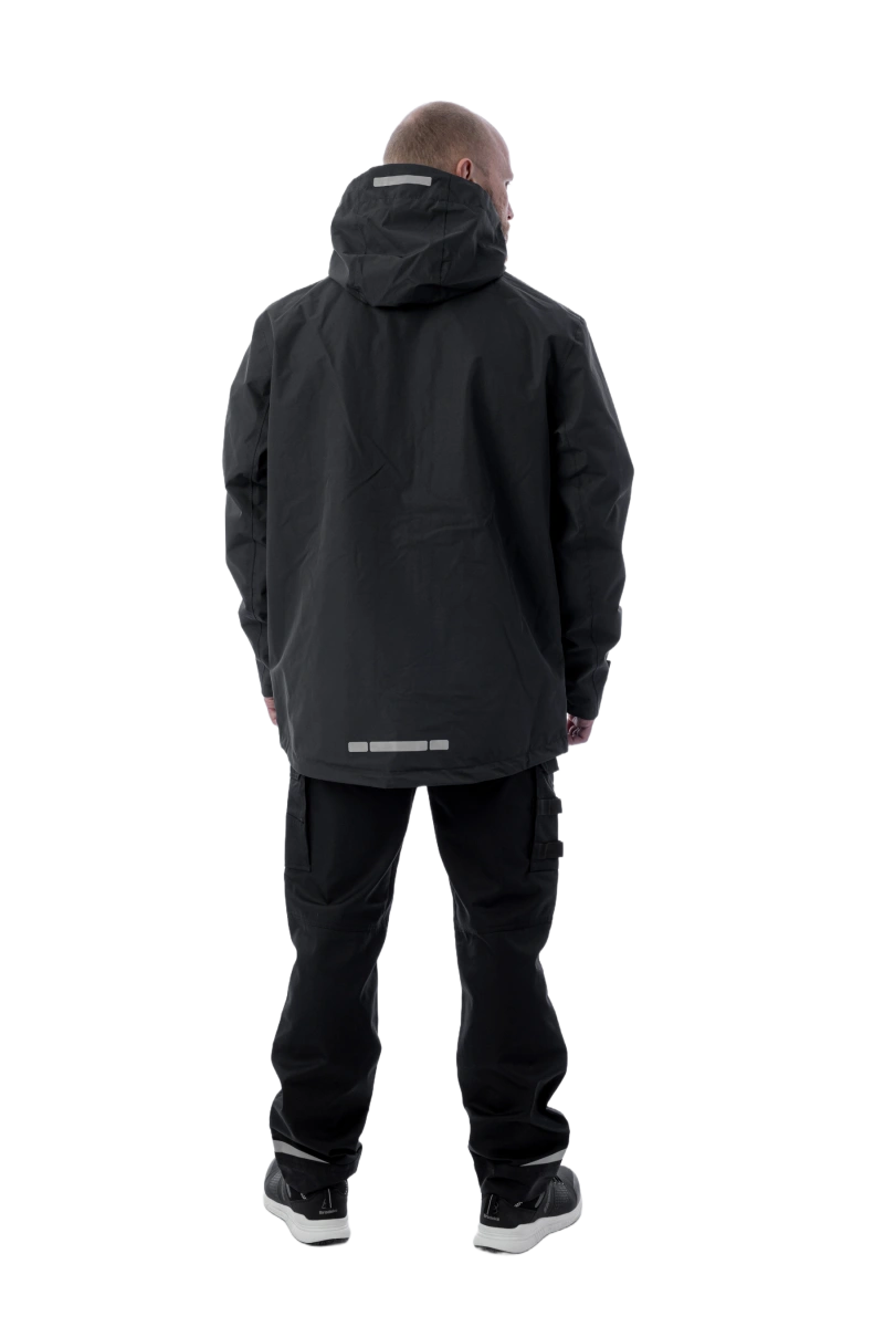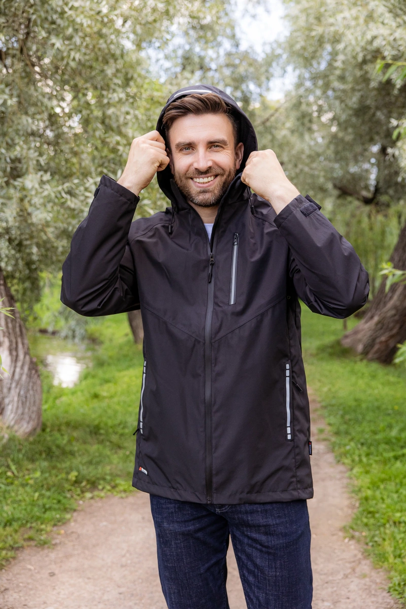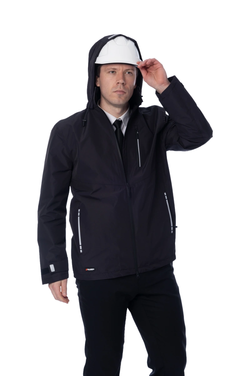 Защита от дождя и ветра (10 000 мм) Высокая паропроводимость (10 000 г/м2/24 часа) DWR-пропитка Сетчатая подкладка Капюшон отстёгивается и регулируется, можно носить с каской Регулировка объёма куртки по низу изделия эластичным шнуром Основные швы герметизированы Влагозащитные молнии 5 карманов Светоотражающие элементы