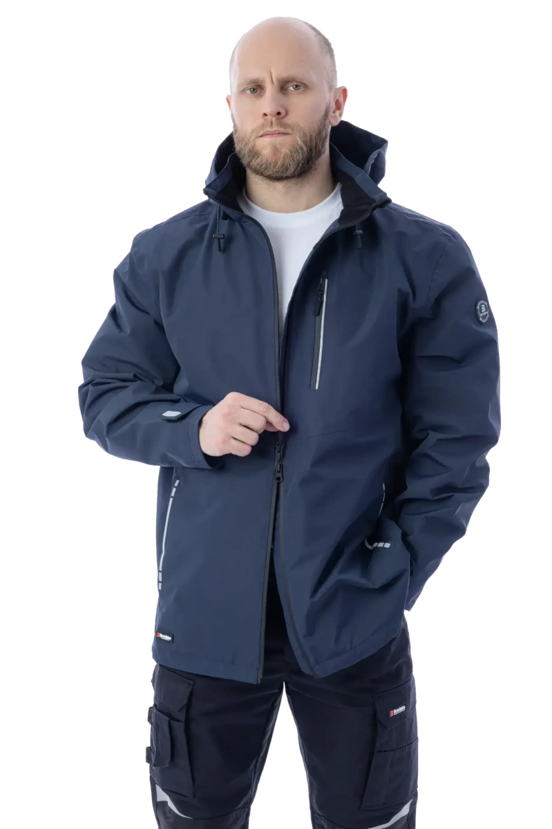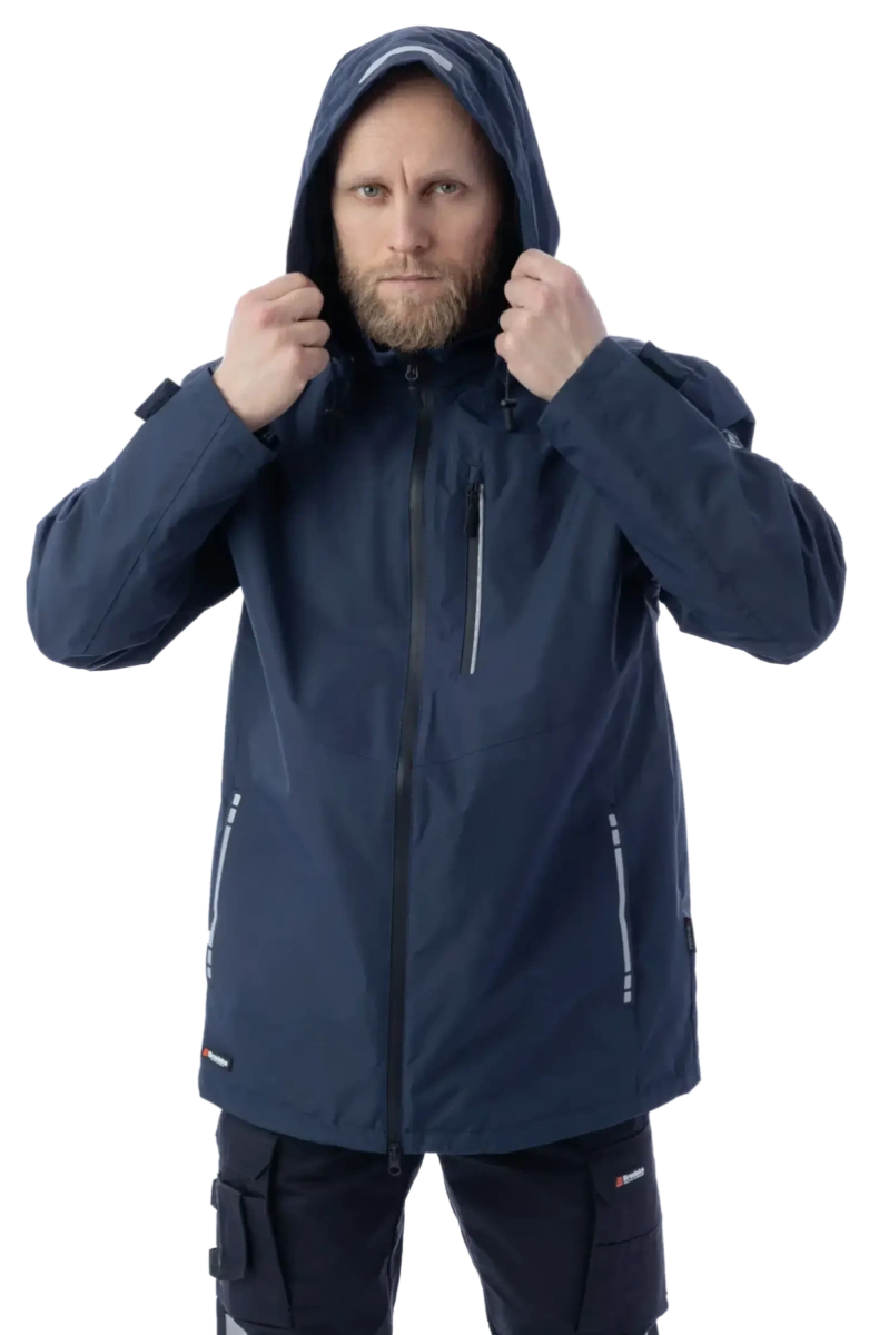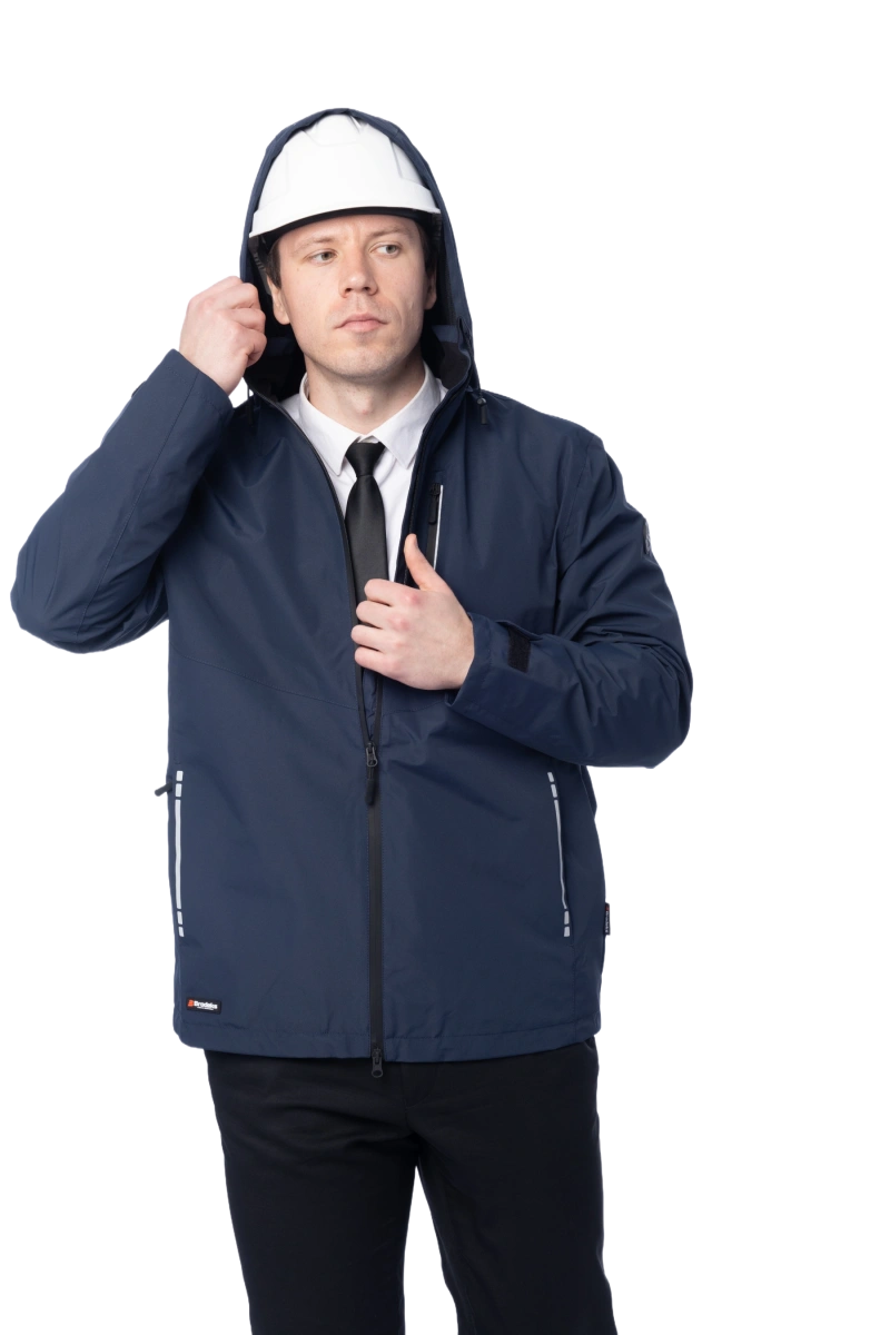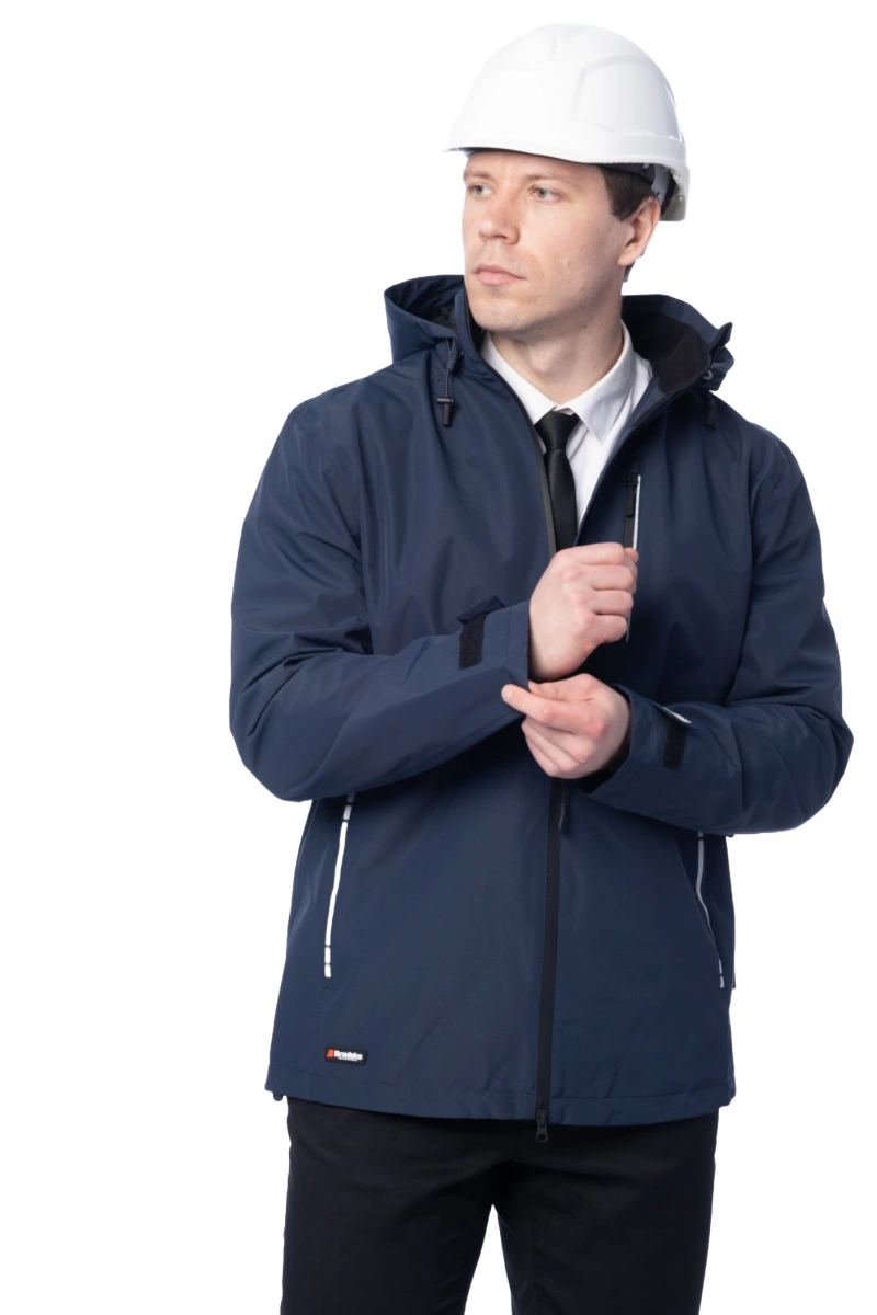 Защита от дождя и ветра (10 000 мм) Высокая паропроводимость (10 000 г/м2/24 часа) DWR-пропитка Сетчатая подкладка Капюшон отстёгивается и регулируется, можно носить с каской Регулировка объёма куртки по низу изделия эластичным шнуром Основные швы герметизированы Влагозащитные молнии 5 карманов Светоотражающие элементы