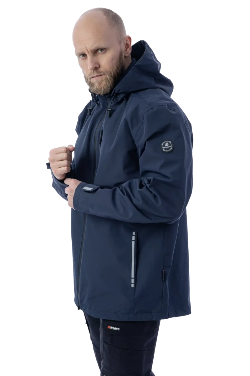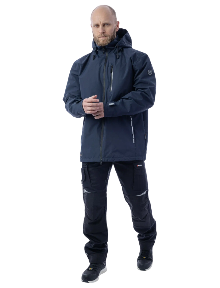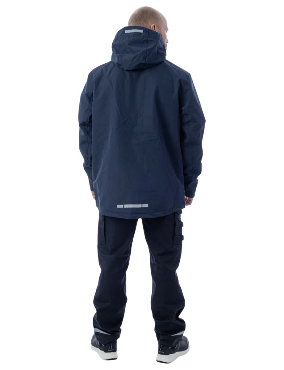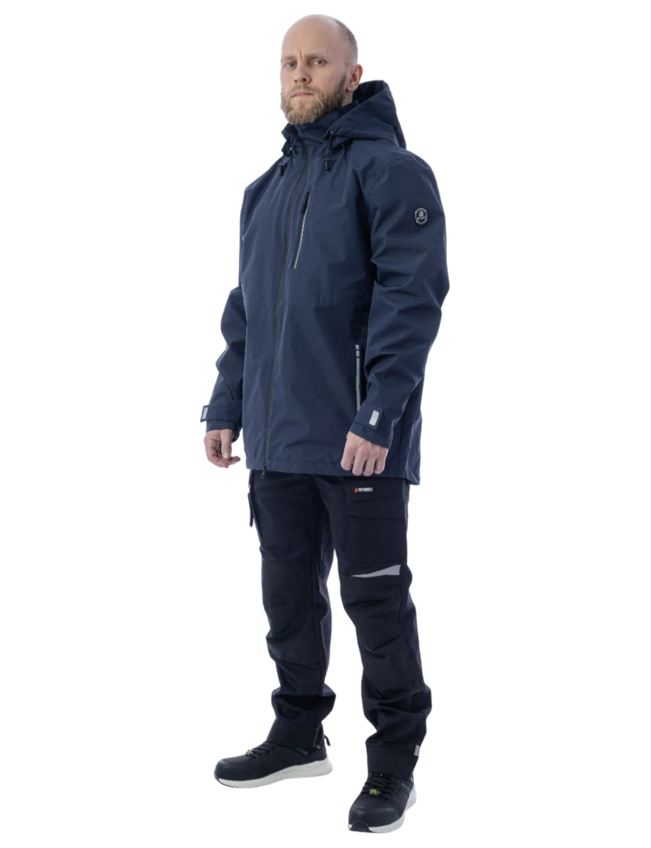 Защита от дождя и ветра (10 000 мм) Высокая паропроводимость (10 000 г/м2/24 часа) DWR-пропитка Сетчатая подкладка Капюшон отстёгивается и регулируется, можно носить с каской Регулировка объёма куртки по низу изделия эластичным шнуром Основные швы герметизированы Влагозащитные молнии 5 карманов Светоотражающие элементы