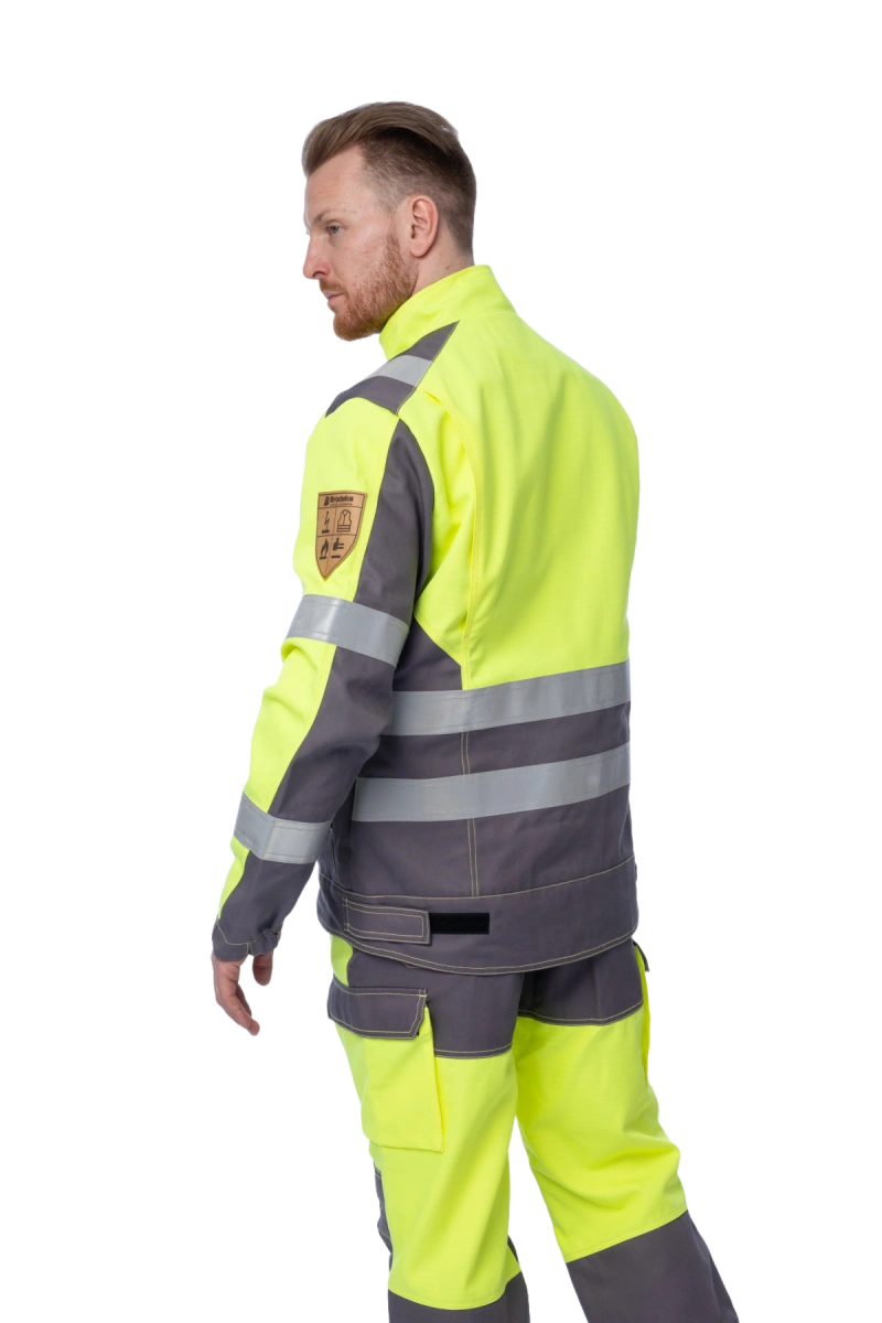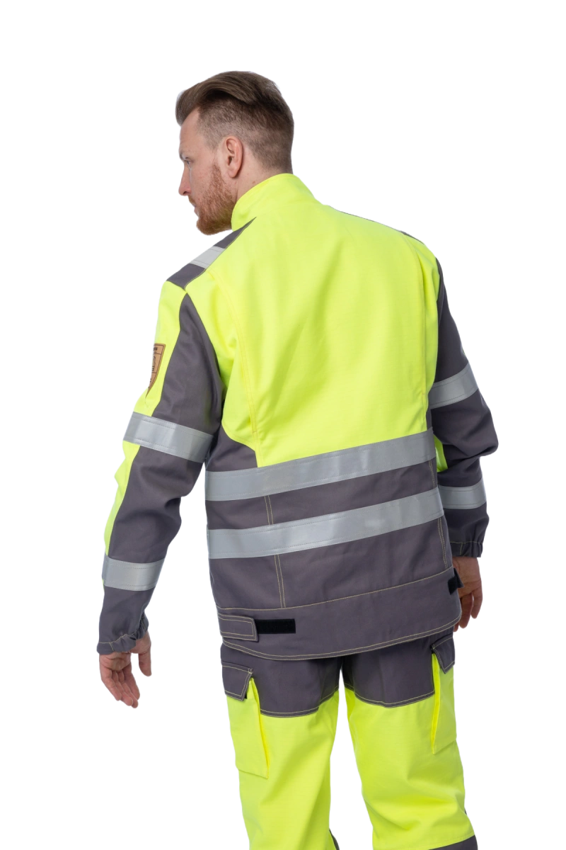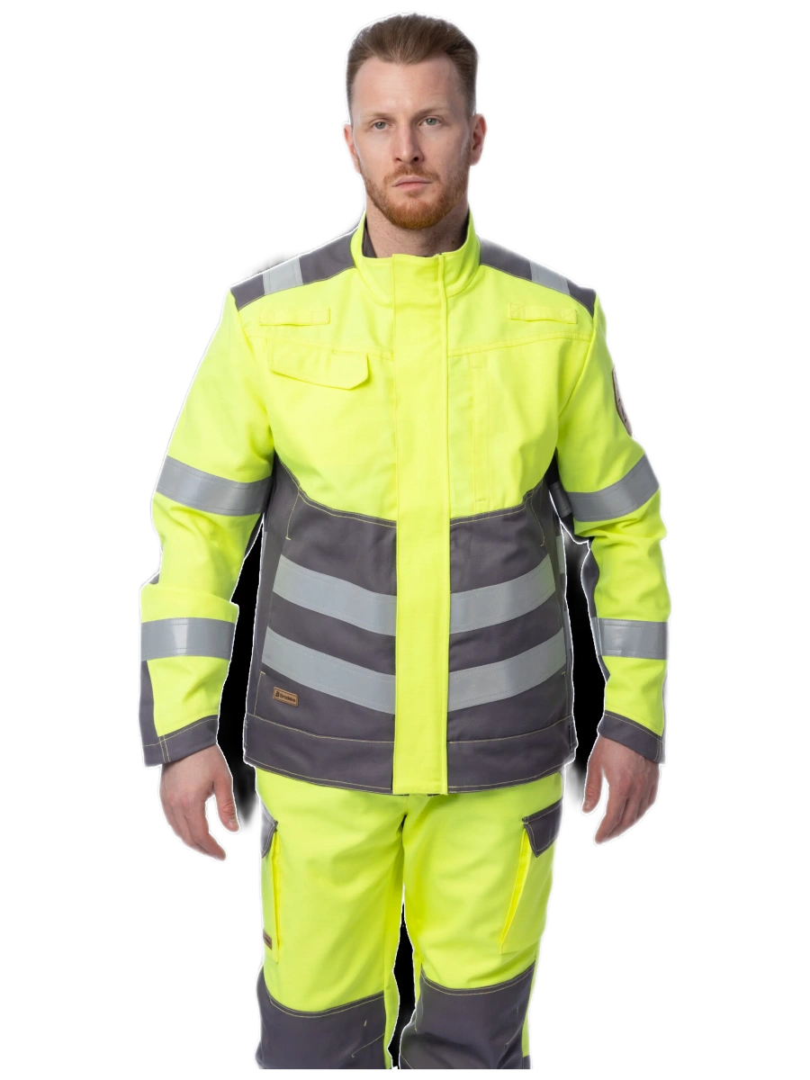 Антистатическая Термостойкая 2 класс видимости Защищает от кратковременного воздействия пламени Обеспечивает повышенную видимость МВО-защита, благодаря пропитке Hydrofoil Очень прочная, благодаря плетению ткани рип-стоп Термостойкая фурнитура Эргономичный крой Воротник-стойка Центральная молния под защитной планкой Удлинённая спинка 2 нагрудных кармана, 2 нижних кармана на молнии, 1 карман на подкладке Рукава на резинке Регулировка патами на липучках по низу куртки Светоотражающие ленты шириной 50 мм
