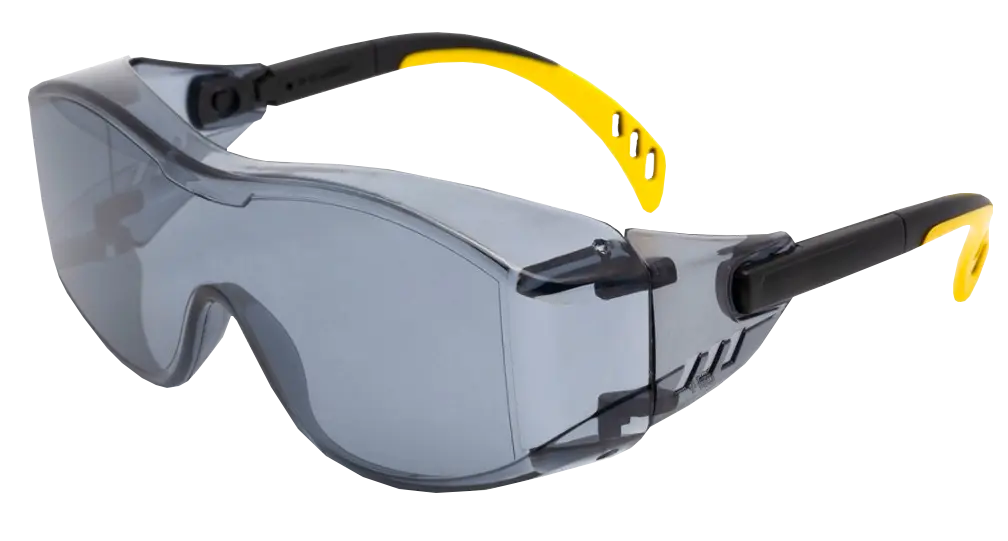 Регулируемые по длине и углу наклона двухцветные удобные дужки с мягкими заушниками, созданные с применением инновационного материала ТЭП (тэрмоэластопласт) и соединенные с монолинзой встроенными винтами, обеспечивают универсальную настройку для любого типа головы и лица, что гарантирует защиту от оптических искажений, а также позволяет использование данной модели с корригирующими очками. Защитное панорамное стекло отличается высокими оптическими характеристиками, эргономика дужек обеспечивает комфортную посадку без точек давления и создает возможность адаптировать очки под индивидуальные требования пользователя в различных отраслях и видах деятельности, в том числе в химических лабораториях, нефте- и газоперерабатывающей промышленности.