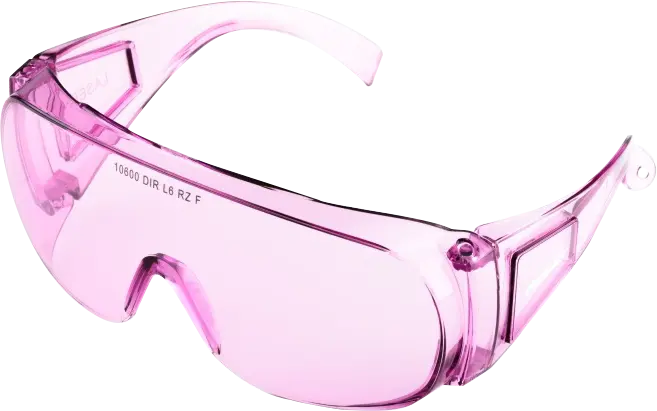 Очки защитные открытые с панорамным поликарбонатным розовым стеклом-светофильтром.