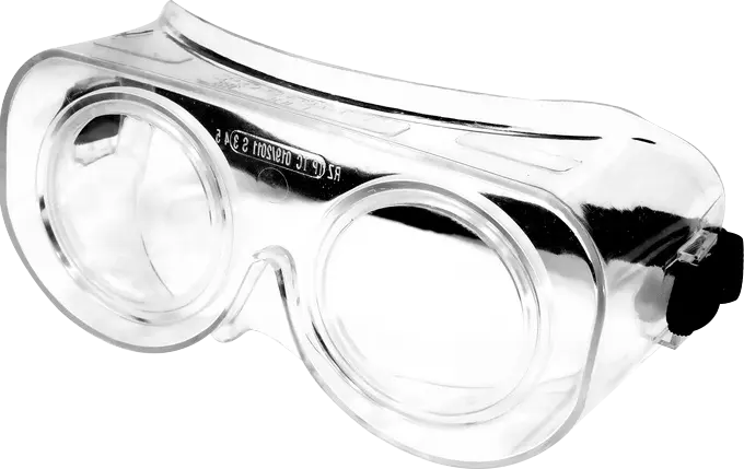 Очки герметичные с минеральными защитными упрочненными стеклами, максимально устойчивыми к абразивному воздействию. Мягкий корпус из ПВХ, регулируемая эластичная наголовная лента выполнена из маслобензостойкой резины.
