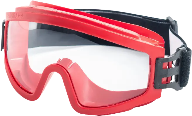 Очки с панорамным защитным стеклом из оптически прозрачного ацетата целлюлозы, устойчивого к царапанию и истиранию, имеющего специальный незапотевающий слой изнутри и твердый слой снаружи.