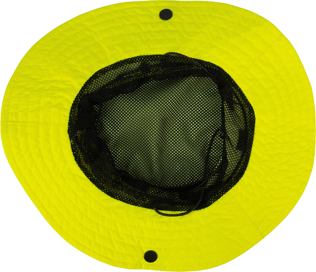 ОписаниеПанама разработана специально для работ в жаркую погоду. Широкие поля эффективно защищают от солнца, а сетчатые вставки обеспечивают отличную вентиляцию. Выполнена из водостойкого материала для защиты от дождя. Кнопки по бокам позволяют закрепить поля, панама при этом выглядит как "ковбойская шляпа". Объем регулируется утяжкой на задней части. Надежно фиксируется шнуром под подбородком. Яркая флуоресцентная ткань и светоотражающие элементы придают дополнительную видимость.