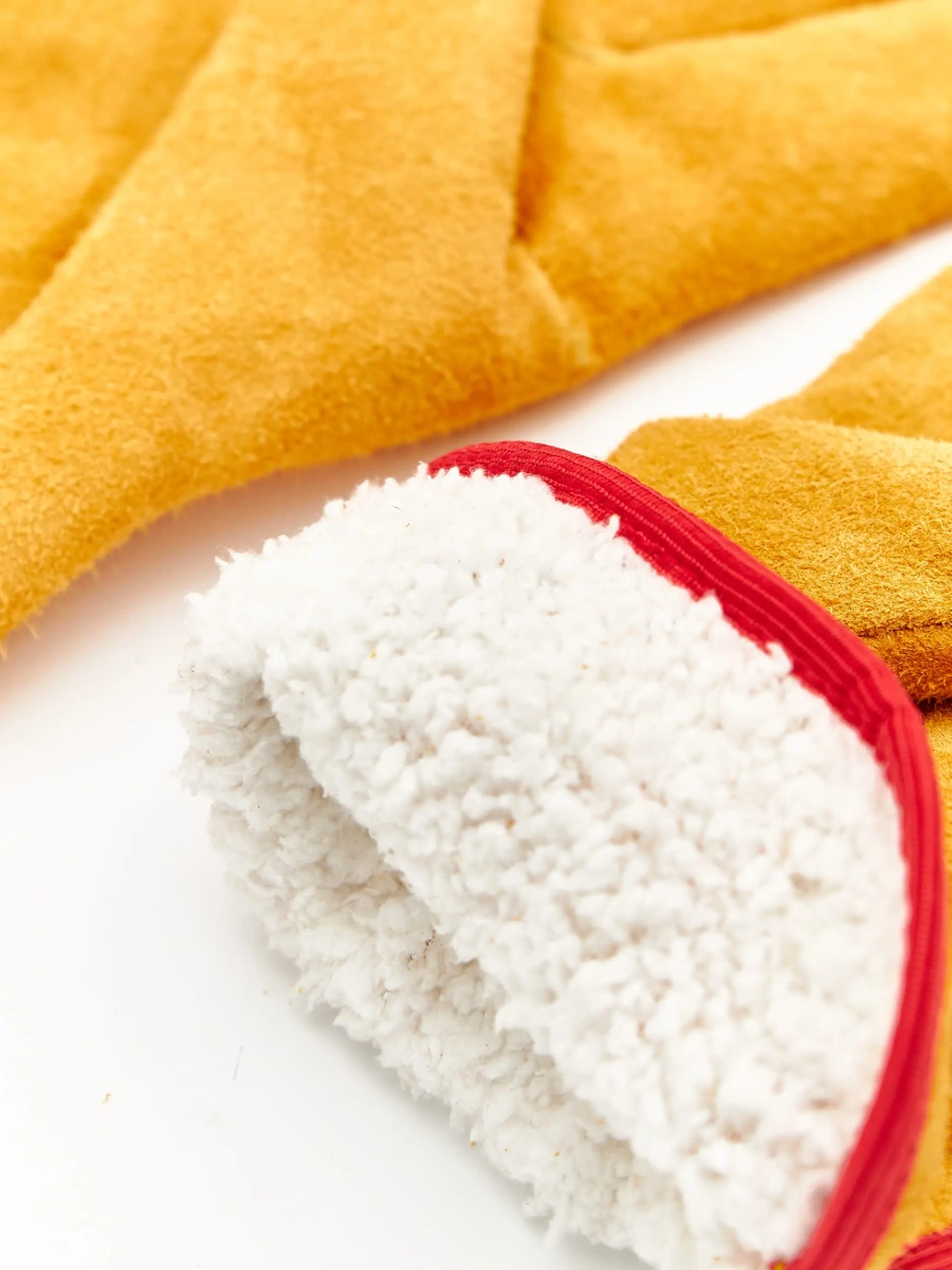 ОписаниеПерчатки для защиты от механических воздействий и пониженных температур из цельного спилка с подкладкой из искусственного меха белого цвета, длина 270 мм. Спилок КРС - только спинная часть шкур, прошедших предварительный отбор, спилок однородный, сорт В (1,1-1,2 мм), шлифованный, желтого (золотого) цвета. На запястье резинка, двойные швы. В перчатках использован мех. Мех полностью сшит по периметру, для обеспечения наивысшего комфорта при использовании. Перчатки предназначены для защиты рук от ОПЗ, истирания, обеспечивают высокий уровень защиты.