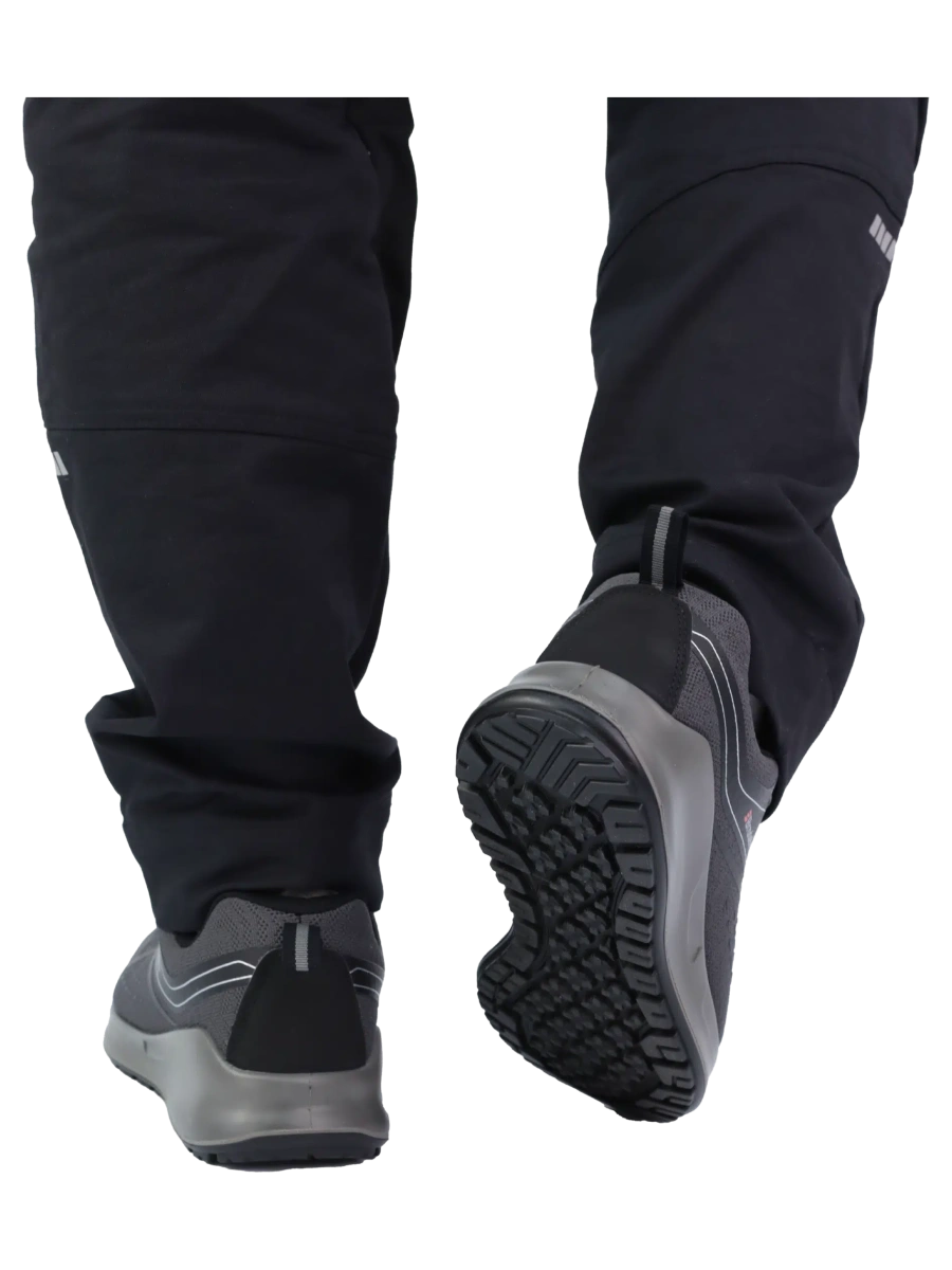 Верх: трикотажный усиленный текстиль + ТПУ покрытие Язычок: 3D сетка Подошва: двухслойная (ПУ/ПУ) Подкладка: 100% полиэстер Стелька: вспененный ЭВА -