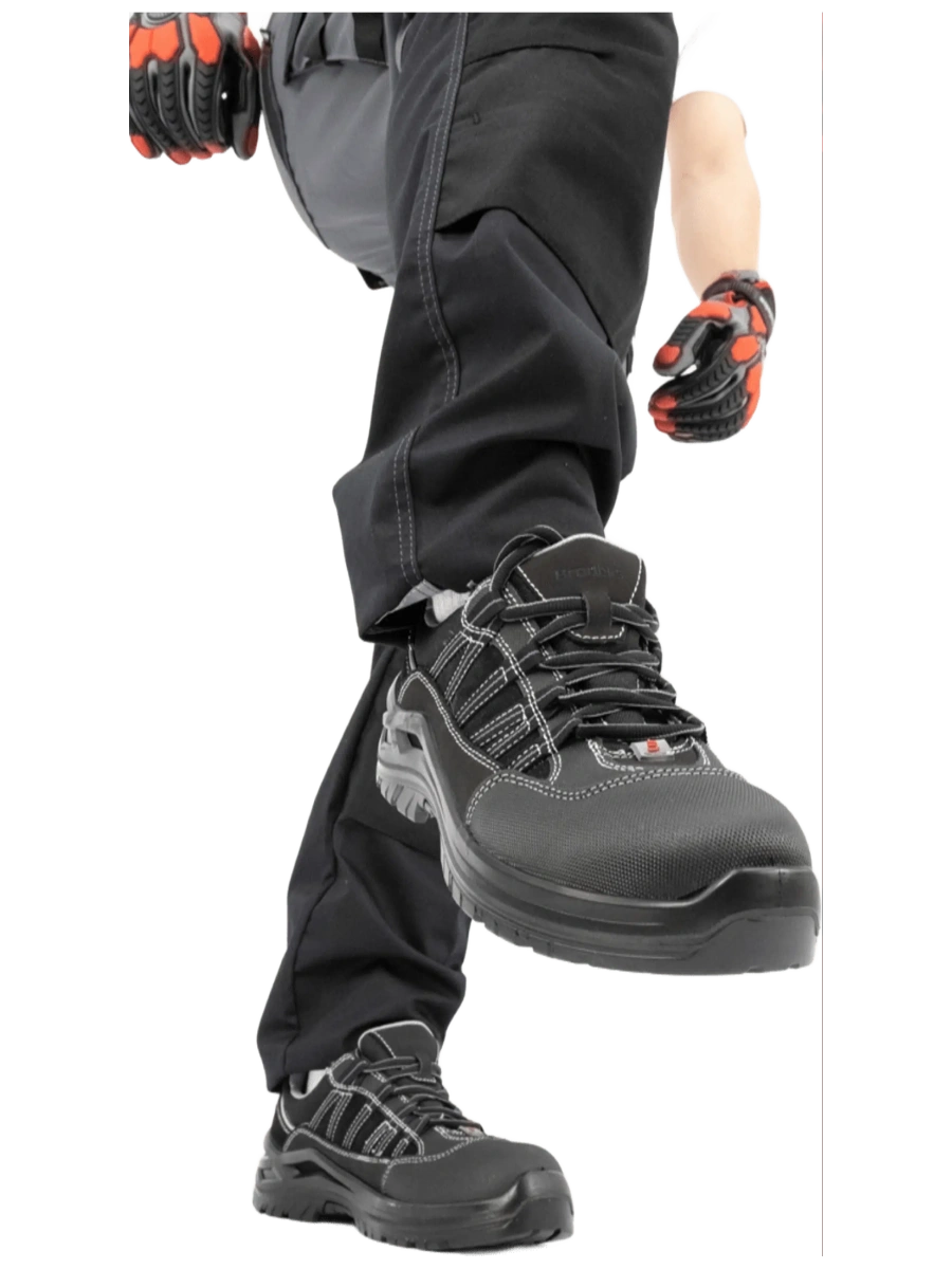 ОписаниеПолуботинки летние мужские Brodeks Cyclone BRS102 S1P, черный - легкая, удобная и привлекательная защитная обувь с прекрасными водоотталкивающими свойствами и высокой степенью защиты. Верх обуви выполнен из комбинации натуральной кожи, защищающей от влаги, и легкого дышащего текстиля. Это позволяет обеспечить комфорт и высокую степень защиты при небольшом весе обуви. Основные области применения: подходит для уличных работ в летний и демисезонный период, а также для круглогодичных работ в помещении. Рекомендуется для таких сфер, как строительство, монтажные работы, обслуживание техники и оборудования, отделочные работы.
