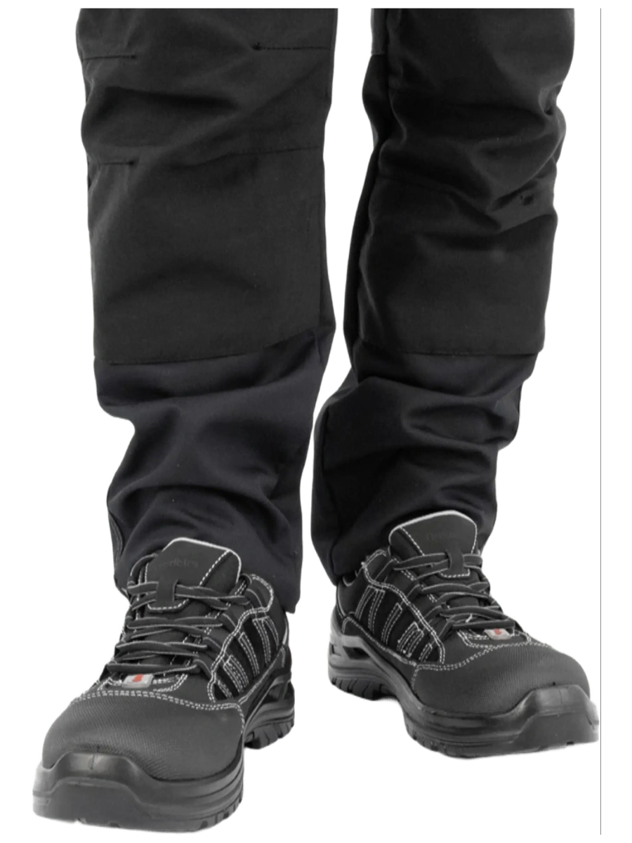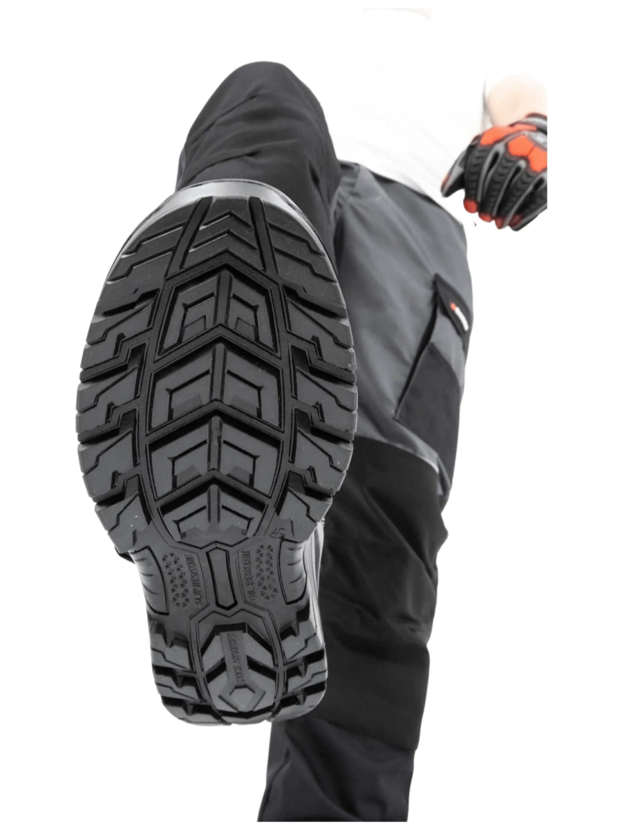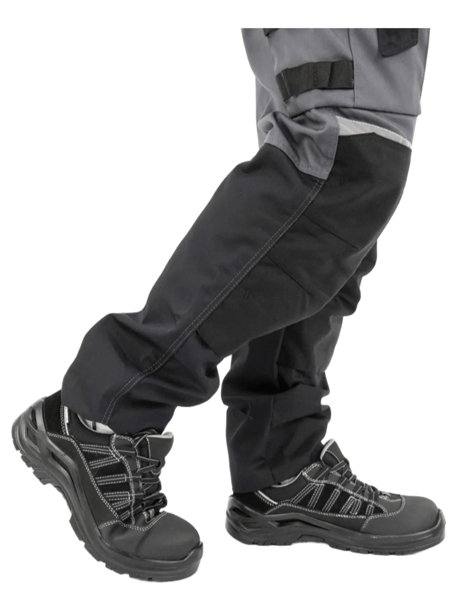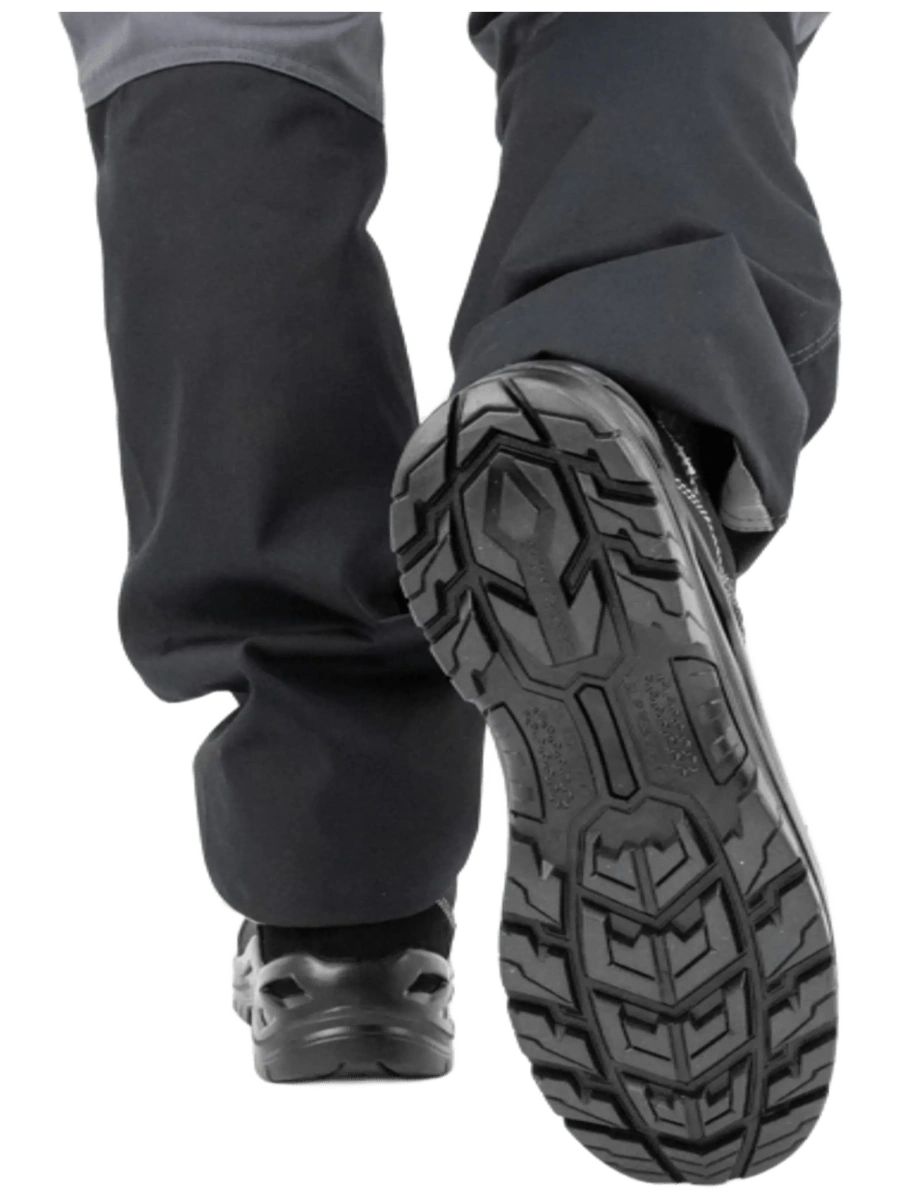 Верх: натуральная кожа (замша) + текстильные вставки + усиленная вставка в носочной части Мягкий кант: кордура Подошва: двухслойная (ПУ/ПУ) Подкладка: текстиль Подносок: композитный (200 Дж) Неметаллическая антипрокольная стелька (1200 Н·м) Стелька: анатомическая с двумя зонами амортизации Носочная часть: защитная ТПУ вставка -