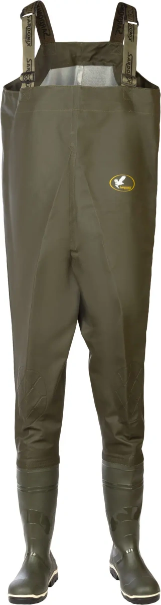 ОписаниеРыбацкий полукомбинезон выполнен из водооталкивающего материала "Винитол" на базе рабочих сапог в трехкомпонентном исполнении. Высокопрочное соединение верхней и нижней частей обеспечивает надежную защиту от попадания влаги во внутрь полукомбинезона. Регулировка по высоте при помощи пряжки. Дополнительное усилиние в области коленей. Внутри предусмотрен карман.