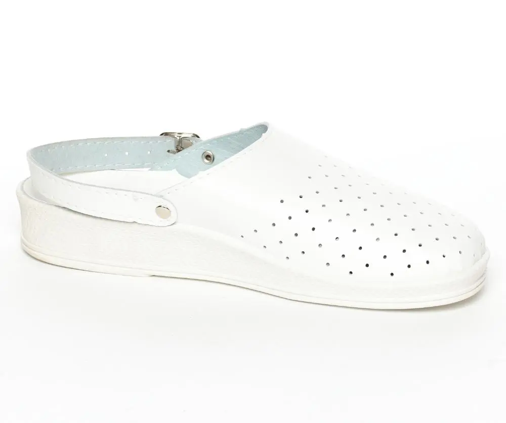 ОписаниеПерфорированная кожа в мужских сабо создает дополнительную вентиляцию. Поворотный регулируемый ремешок может располагаться спереди и сзади, для фиксации пятки и декоративного элемента на изделии. Удобная модель предназначена для использования в сфере обслуживания, легкой промышленности, медицины.