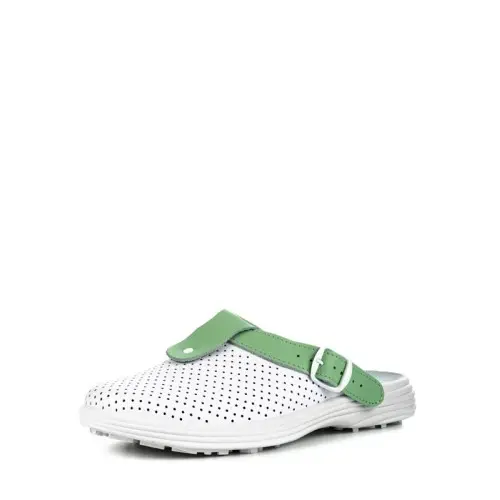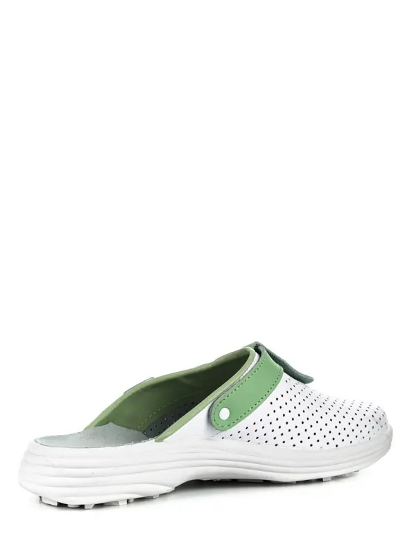 Сабо женские нат.кожа Комфорт ПВХ, белый/зеленый