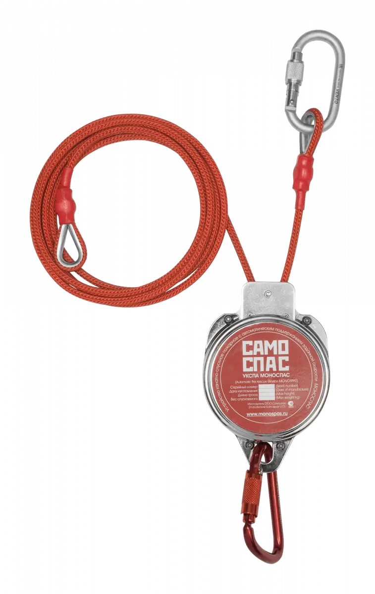 ОписаниеИндивидуальный самоспасатель с высоты МОНОСПАС - комплект спасательного снаряжения предназначен для эвакуации людей при пожаре с высоты. Устройство полностью автоматическое. Эвакуации человека с высоты до 50 метров при чрезвычайных ситуациях. Устройство не требует обучения и специальной подготовки эвакуируемого. Идеально подходит для эвакуации с мостового крана.