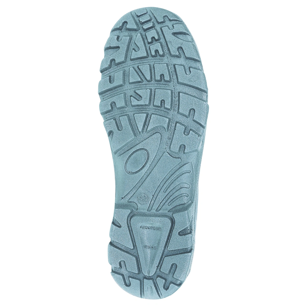 Двухслойная маслобензостойкая полиуретановая подошва литьевого метода крепления имеет вставку в пяточной части подошвы, обладающую амортизационными свойствами и способную гасить ударные нагрузки при ходьбе.
