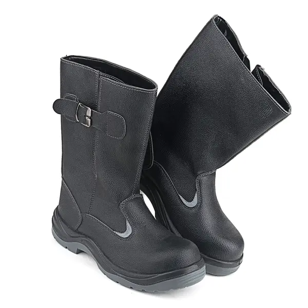 ОписаниеСапоги из натуральной кожи Prosafe серии profi дополнены ремнем с металлической пряжкой для возможности регулировать и комфортно фиксировать ширину голенища.