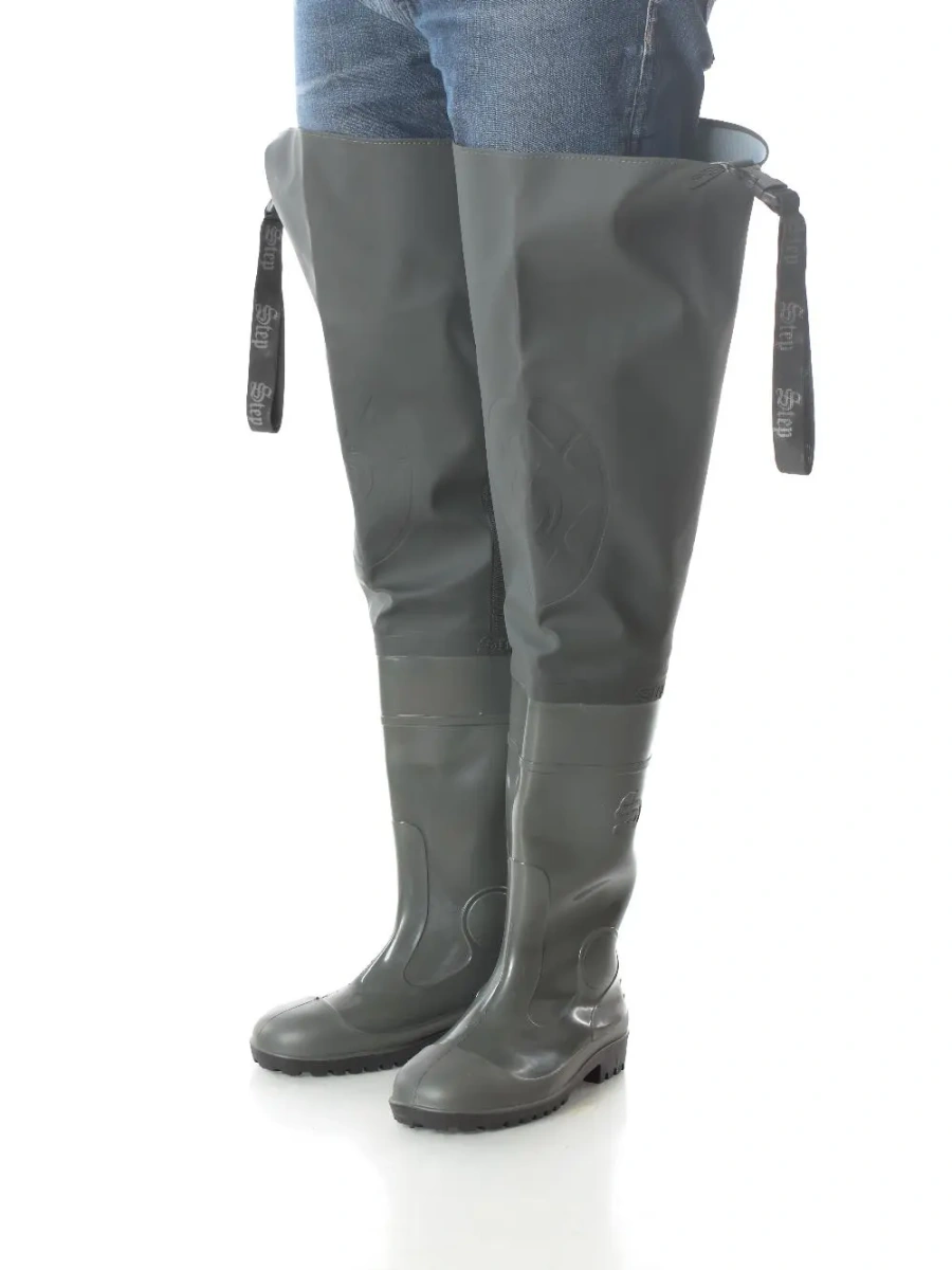 ОписаниеСапоги ПВХ рыбацкие регулируются по длине на бретелях. Верхняя часть герметично соединена с сапогами. Модель изготавливается на базе рабочих сапог. Изделие полностью водонепроницаемо. Наколенники выполнены из винтитола и поролона. На заказ сапоги могут быть изготовлены с металлическим защитным носком (Мун 200) и проколозащитной металлической стелькой (1200 Н).