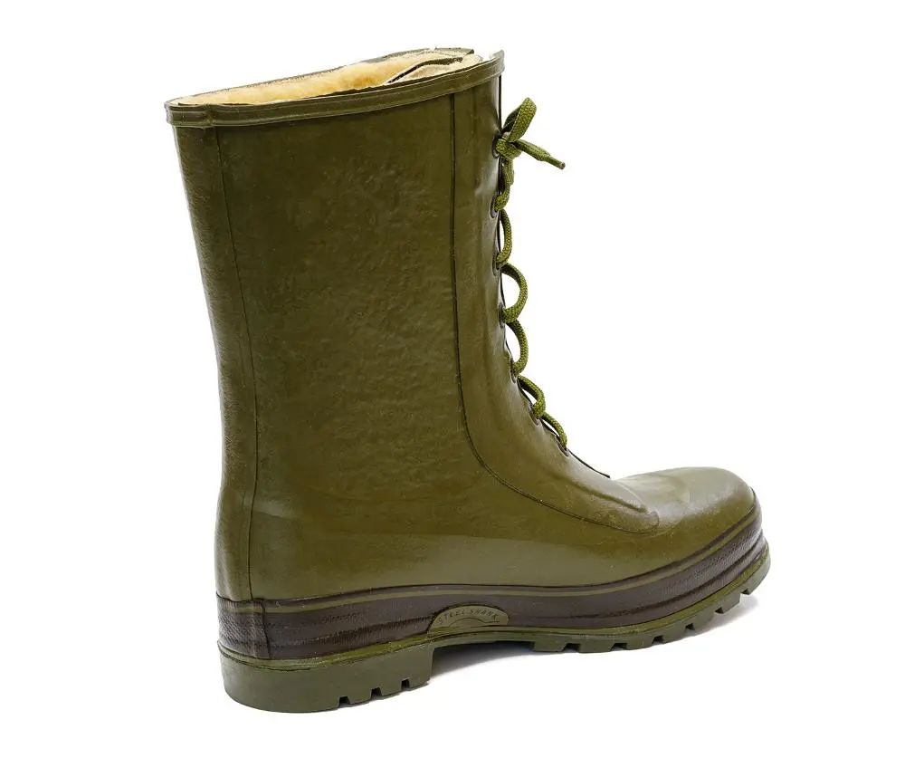 Благодаря шнуркам сапоги отлично сидят на ноге, снег и листья не засыпаются. Специальный упор на пятке помогает легко снять сапог, не пачкая руки. Благодаря утеплению из искусственного меха будет сухо в болоте, тепло в снегу. Сапоги из каучука превосходят в прочности сапоги из ПВХ и намного более износостойкие, чем лёгкие сапоги ЭВА. Металлическая пластина в подошве увеличивает жесткость на изгиб и кручение. -