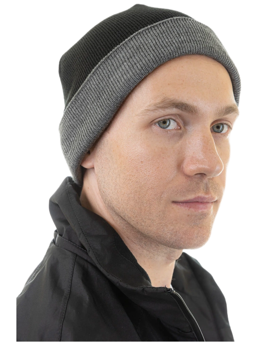 Наружное акриловое трикотажное полотно. Плотная вязка сохраняет форму.\ Хорошо облегает голову. Двухцветная: можно носить налицо и наизнанку. Размер: 56 см.