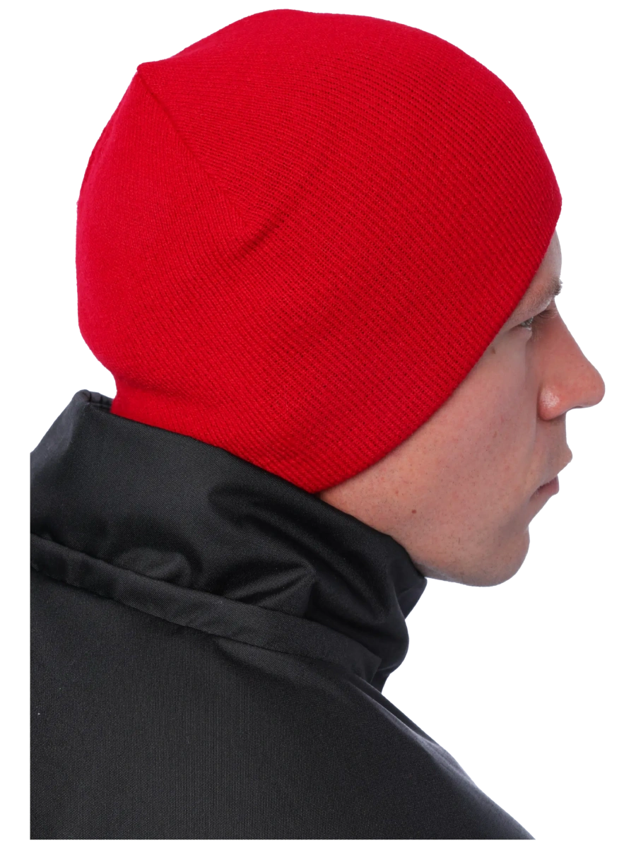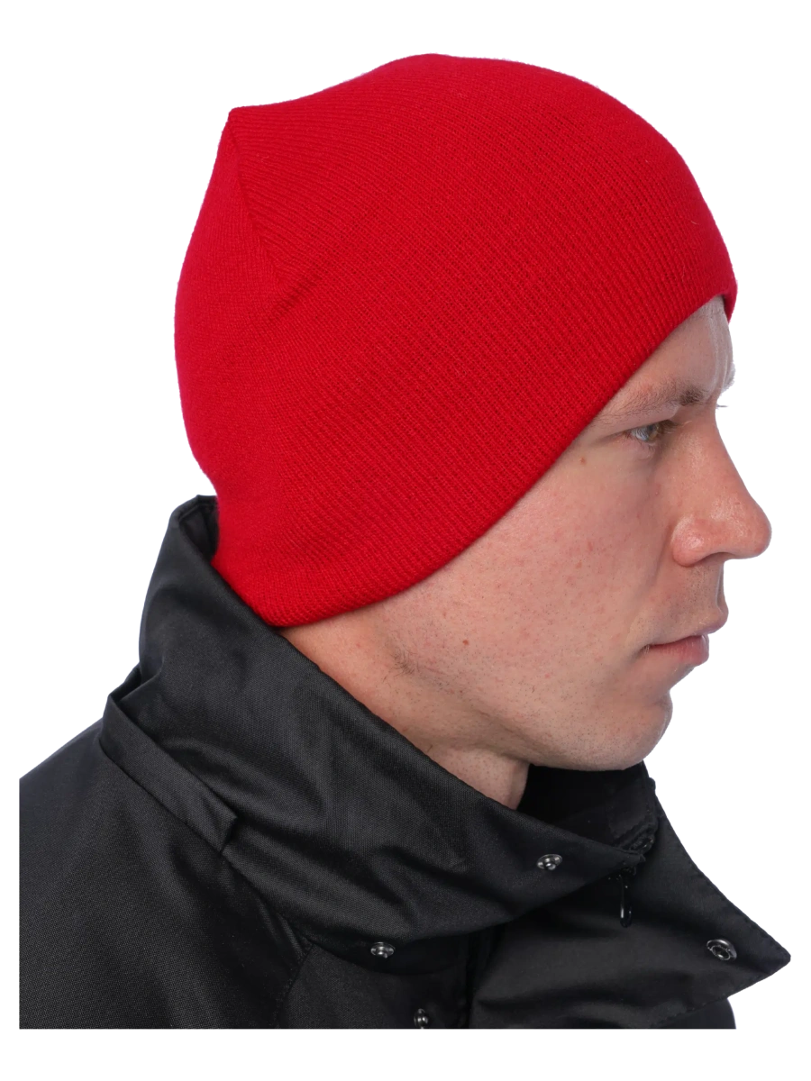 Наружное акриловое трикотажное полотно. Плотная вязка сохраняет форму.\ Хорошо облегает голову. Двухцветная: можно носить налицо и наизнанку. Размер: 56 см.