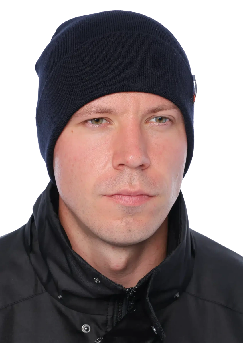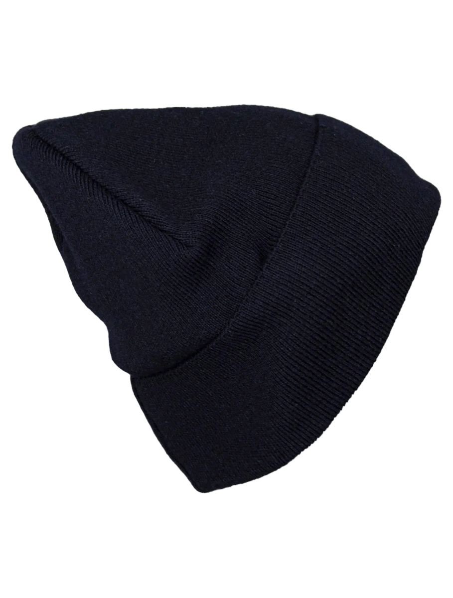Наружное акриловое трикотажное полотно. Плотная вязка сохраняет форму. Хорошо облегает голову. Можно носить в двух вариантах – с отворотом и без него. Размер: 56 см.
