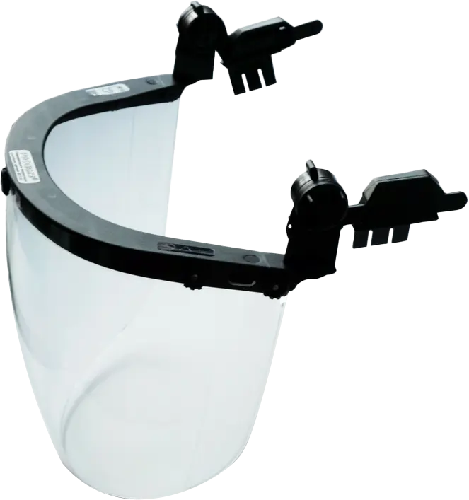 Крепление щитка к защитной каске осуществляется за счет поворотно-фиксирующего устройства, изготовленного из термостойкого материала, устойчивого к износу и гарантирующего надежную фиксацию лицевого щитка в двух положениях «вверх-вниз».