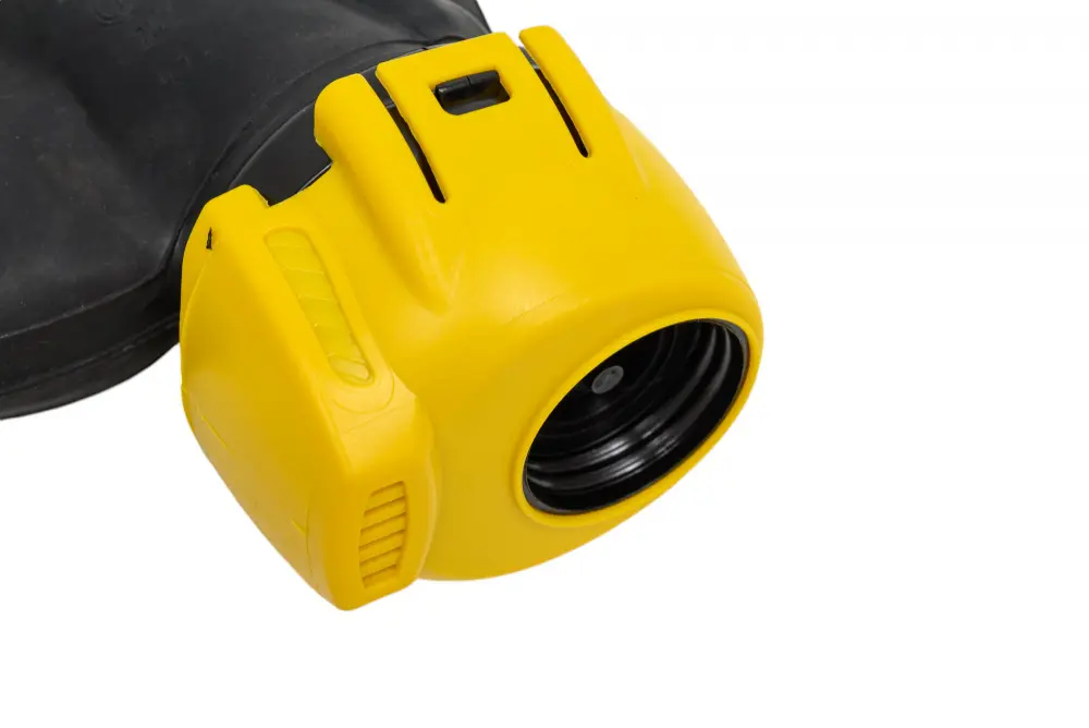 Пластиковая клапанная коробка с лепестками клапана вдоха и выдоха разделяет потоки вдыхаемого и выдыхаемого воздуха и препятствует подсосу вредных веществ.