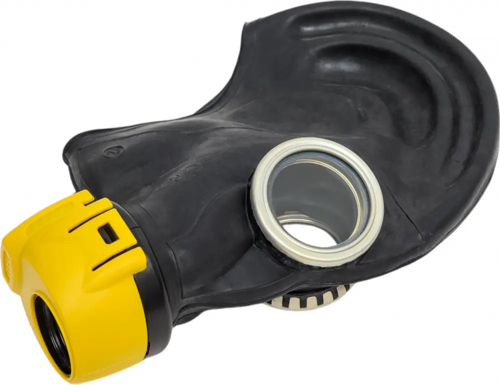 Шлем-маска из резины защищает всю голову от влияния опасных веществ.